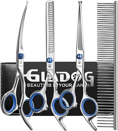GLADOG Professional 5 in 1 Dog Grooming Scissors Set with Safety Round Tips, Sharp and Heavy-duty Pet Grooming Shears for Cats