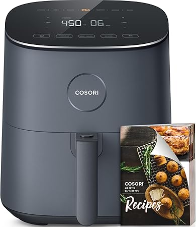 COSORI Air Fryer 9-in-1, Compact 5-Qt, Perect for Meat Enthusiasts with 450ԍF Max Heat Function , 130+ In-App Recipes, Little to No Oil, Easy Clean Glass Touch Panel & Nonstick Basket, Gray