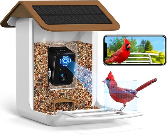 Smart Bird Feeder Camera, Free AI Forever, 32G TF Card & 1080P HD Camera Auto Capture Bird Videos & Solar Panel, App Notify When Birds Detected, Bird House with Built-in Two-Way Microphone