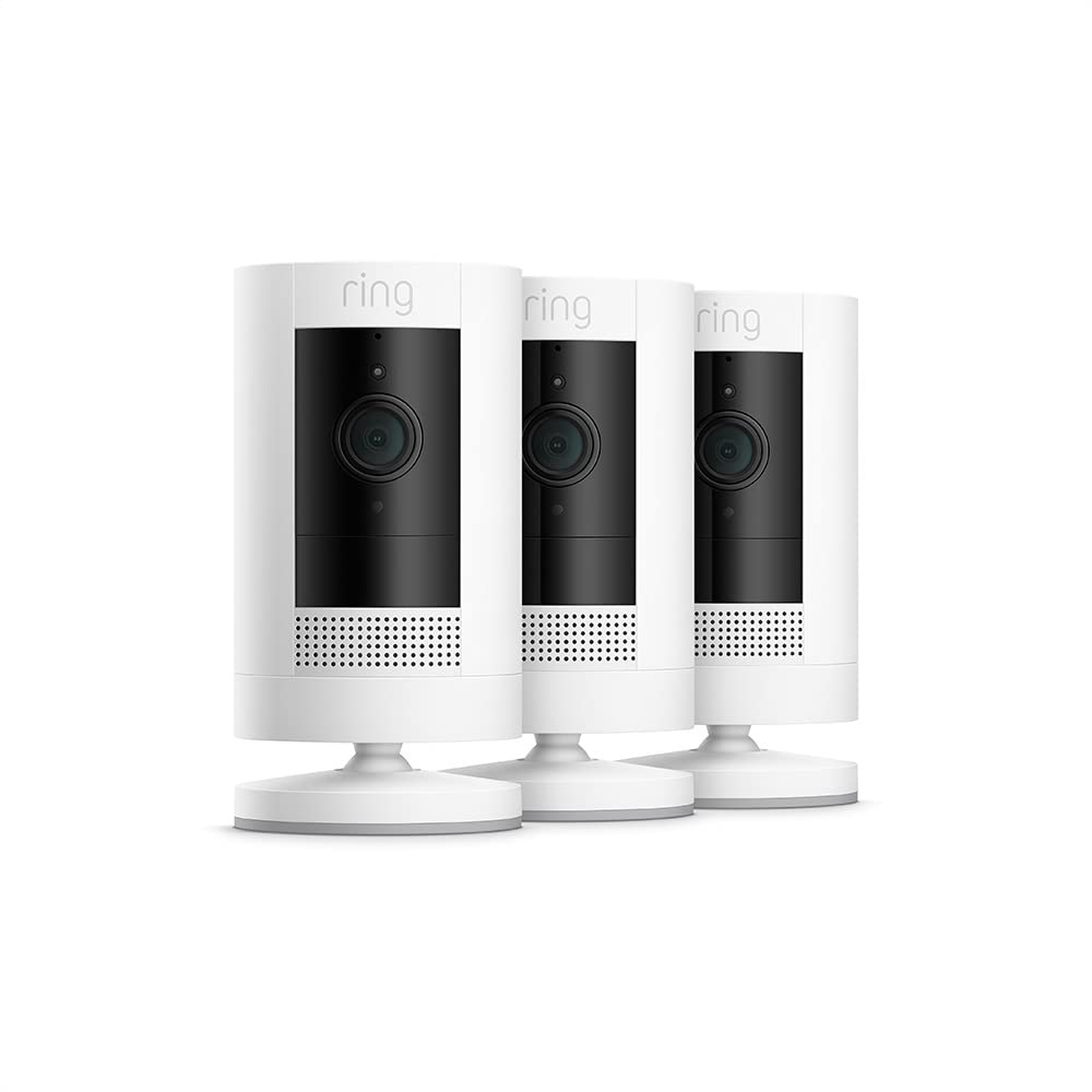 Ring Stick Up Cam Battery HD security camera with custom privacy controls, Simple setup, Works with Alexa - White