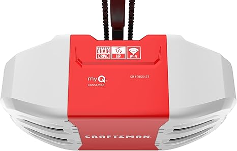CRAFTSMAN 1/2 HP Smart Garage Door Opener - myQ Smartphone Controlled - Chain Drive, Wireless Keypad Included, Model CMXEOCG472, Red