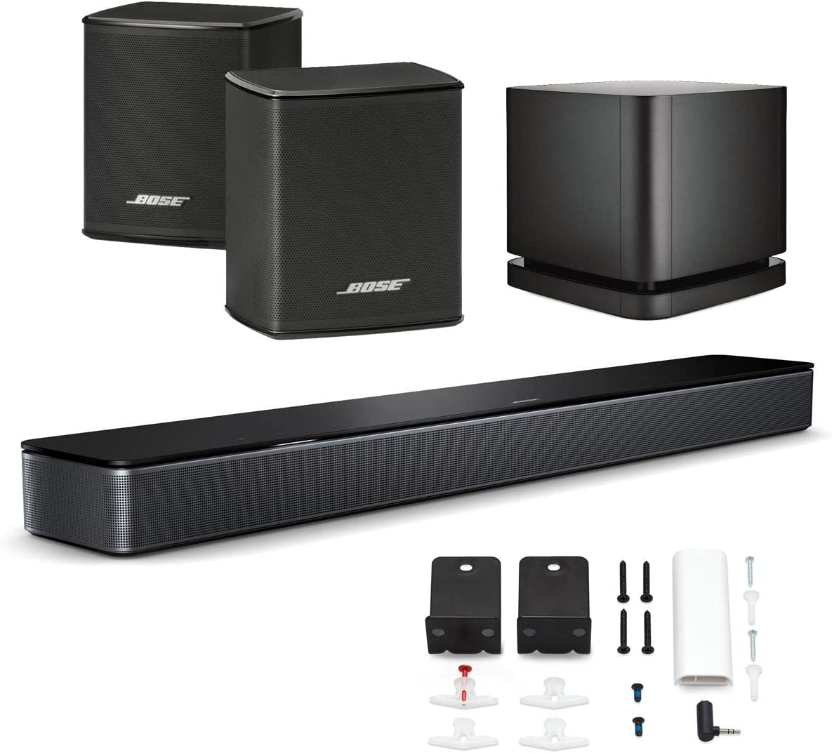 Bose Smart Soundbar 300 Bluetooth Wi-Fi Voice Control Bundle with Wireless Surround Speakers Pair, Bass Module 500 (Black)