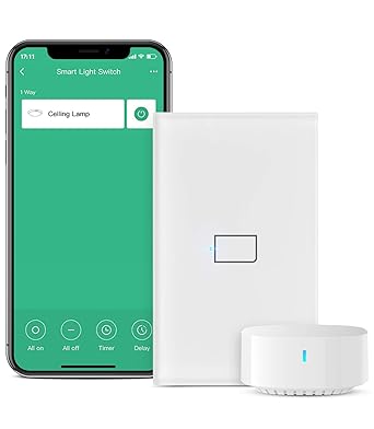BroadLink Smart Light Switch, No Neutral Wire Required, Single Pole with App and Voice Control, 1-Gang Touch Timer Switch, Compatible with Alexa, Google Assistant, IFTTT, Siri Shortcuts, Hub Included