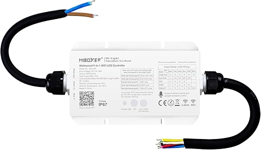LGIDTECH WL5-WP Miboxer LED Strip Light 5 in 1 Controller for 5050 3528, IP67 Waterproof, Smartphone APP Control Without Extra Hub.Amazon Alexa Google Home Assistant Voice Control, DC12-36V, 240W-720W