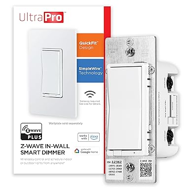UltraPro 700 Series Z-Wave In-Wall Smart Rocker Light Dimmer with QuickFit & SimpleWire, 3-Way Ready, Works with Alexa, Google Assistant, Z-Wave Hub Required, Smart Home, Voice Control, White, 59350