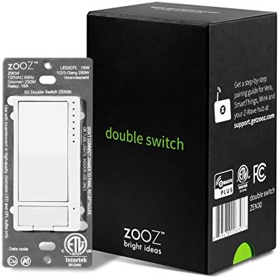 Zooz Z-Wave Plus S2 Double Switch (White) ZEN30 for Fan and Light Combo (NO Speed Control), Signal Repeater, Hub Required (Works with Hubitat, Wink, SmartThings, Vera)