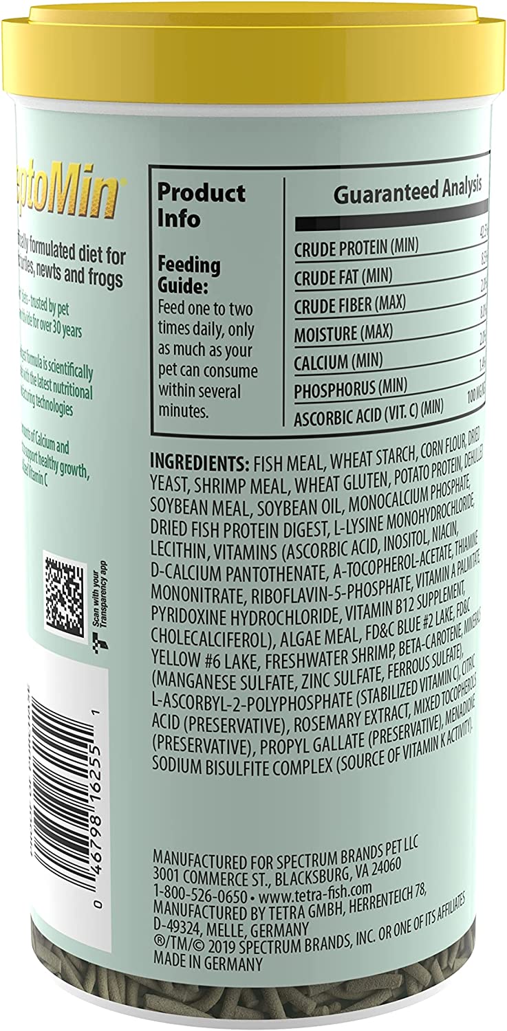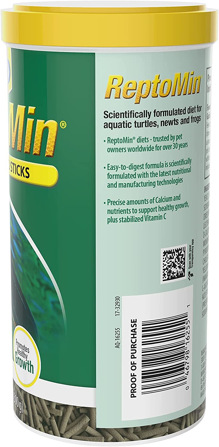 For 50 years, fishkeeping enthusiasts have looked to the Tetra name for products and solutions that add ease and beauty to their home. Whether you're an experienced hobbyist or just starting out, Tetra has everything you need–-from a large variety of quality fish food and innovative equipment to test kits and decor. ReptoMin has been trusted by pet owners world-wide for over 30 years. Tetra ReptoMin Floating Food Sticks with Calcium and Vitamin C is a scientifically formulated diet for aquatic turtles, newts and frogs. The easy-to-digest formula is formulated with the latest nutritional and manufacturing technologies with precise amounts of nutrients, Calcium and Vitamin C to support vitality and good health. Use Tetra ReptoMin Floating Food Sticks to feed one to two times per day and only as much as your pet can consumer within several minutes. For a variety, we recommend trying one of the Tetra ReptoTreat foods.