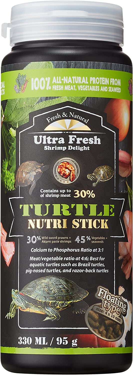 Ultra Fresh - Turtle Nutri Stick, Wild Sword Prawn, Calcium & Vitamin D Enriched Aquatic Turtle Food with Probiotics for Picky Turtles, Made from All Natural Ingredients 3.35 oz
