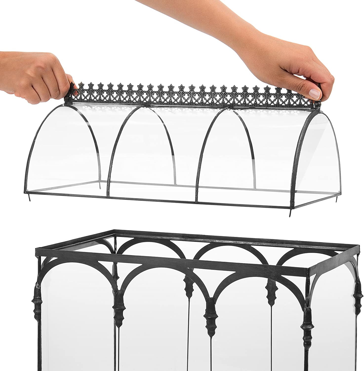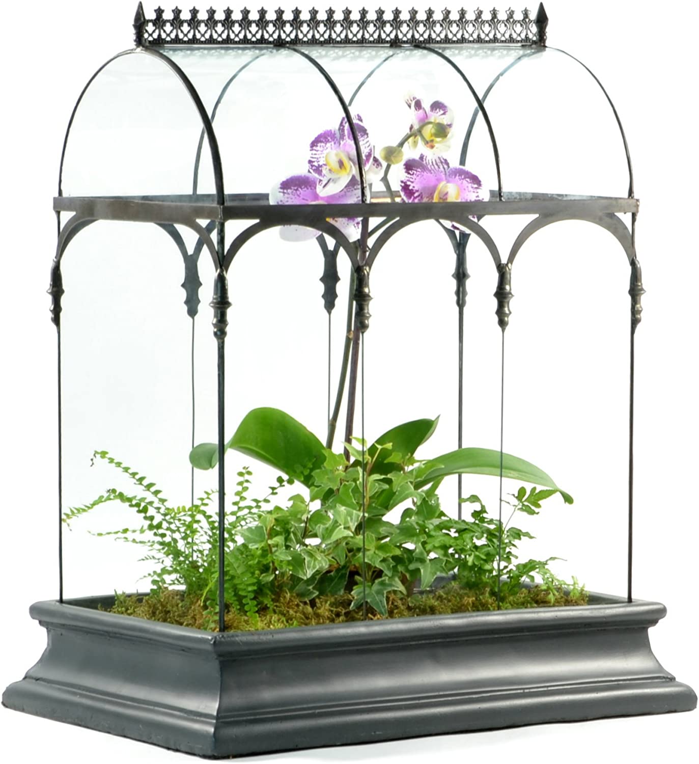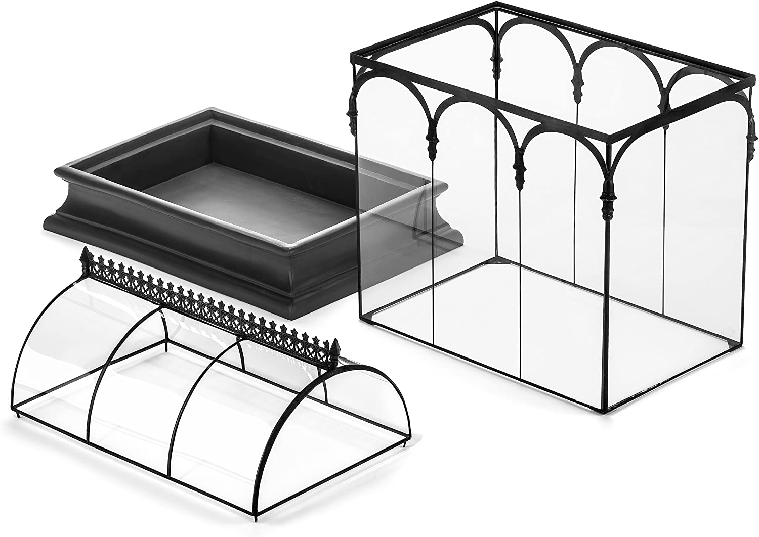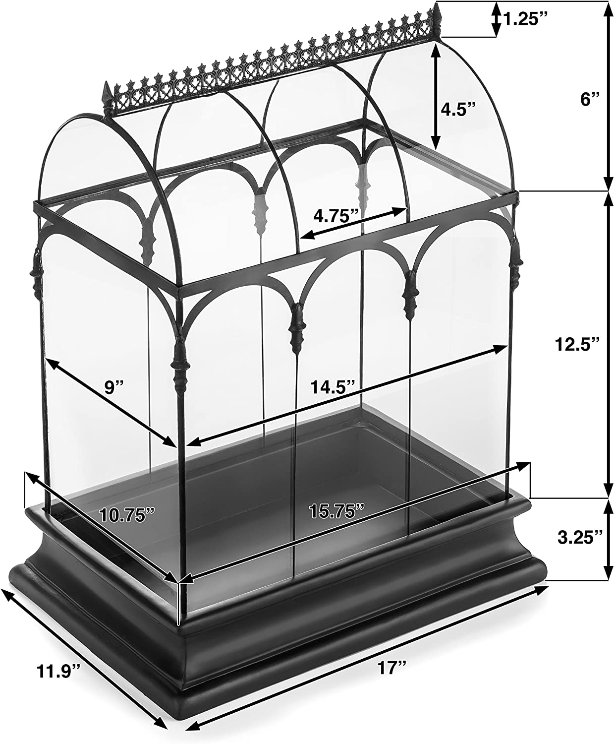 • HOME DÉCOR ACCENT FOR ALL SEASONS – Approximately 22 inches high by 17 inches long by 11.5 inches wide, the resin planting tray is 3.25 inches deep (see photo with complete dimensions). This Wardian Case will make an eye-catching focal point and impressive statement wherever it’s placed. Unique and sturdy, this beautiful large terrarium succulent planter would make a perfect wedding decoration or birthday gift idea.