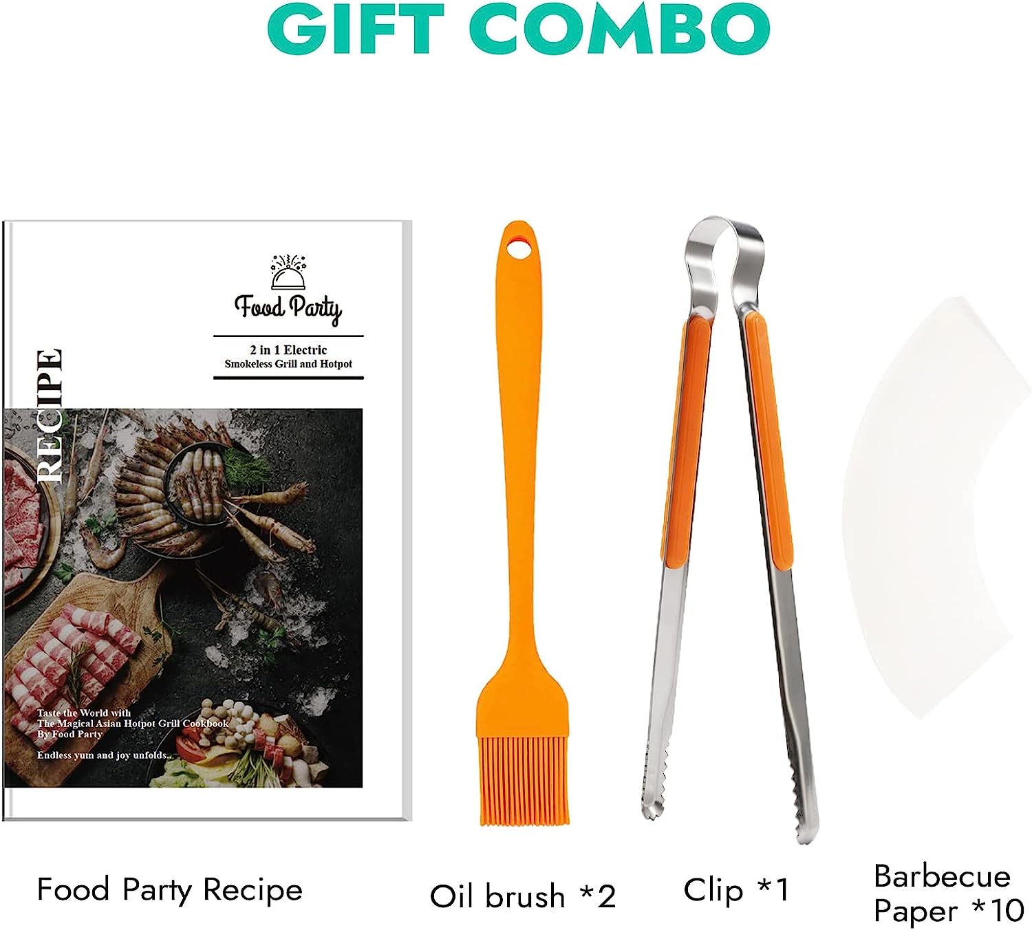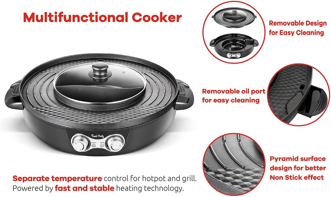 Food Party 2 in 1 Electric Smokeless Grill and Hot Pot