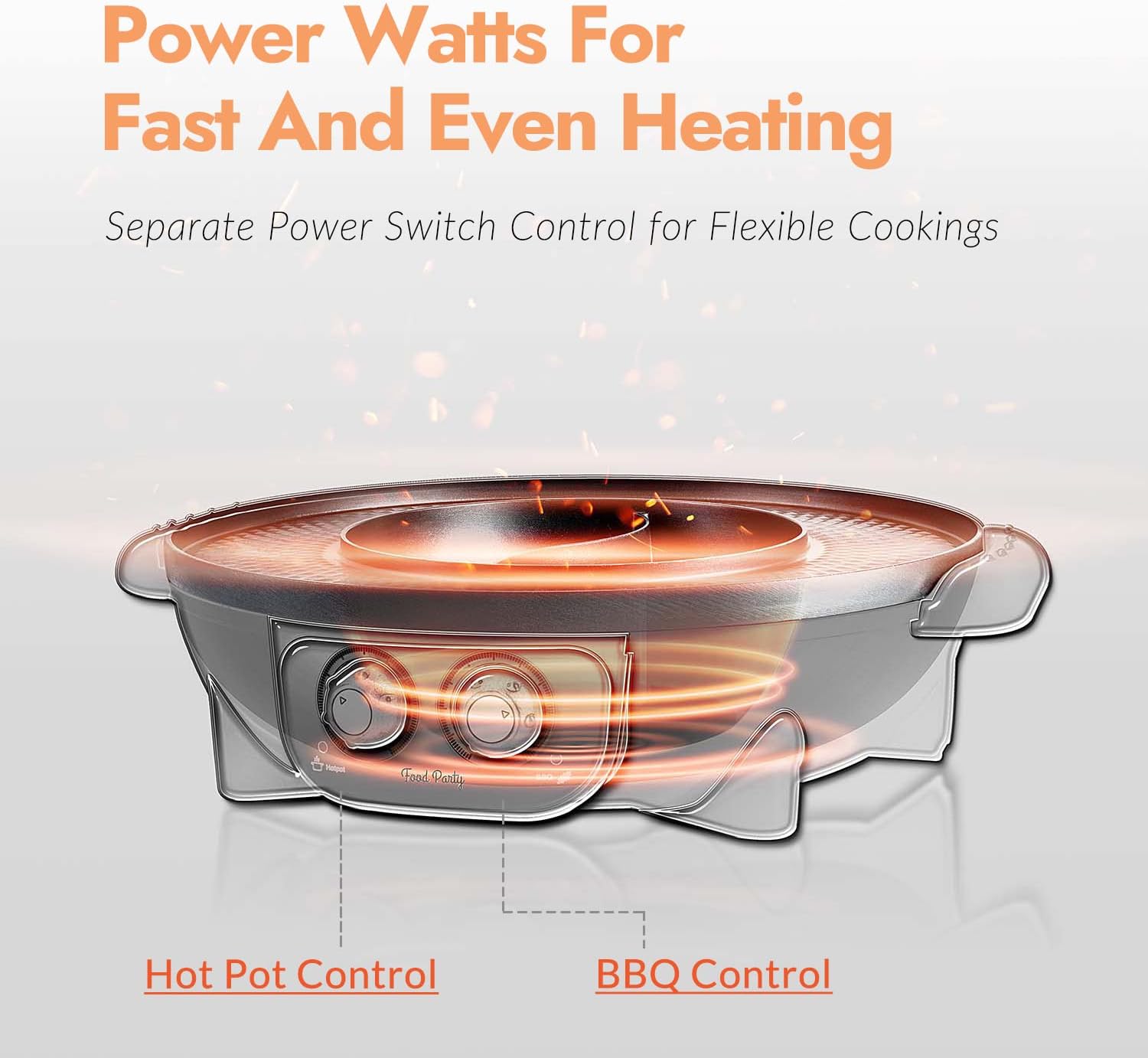 • 🎉Easy to entertain 1-8 people.The hotpot holds 2L (qt) of liquid. The width of the grill surface is 3.5’’ (9cm). Hotpot and grill function together or individually with independent temperature control.