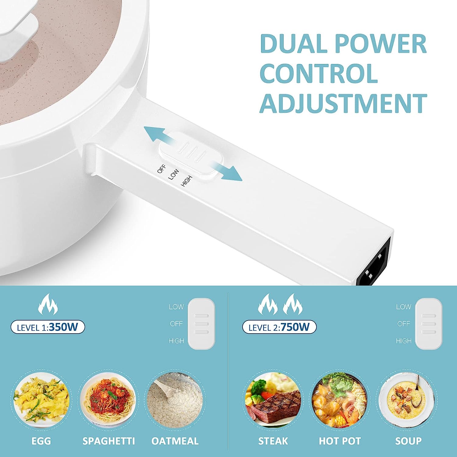 • 【Fast Heating & Safe Protection】Our electric hot pot adopts an upgraded embedded heating element to keep food heated rapidly and evenly, which allows you to enjoy delicious meals within a moment. Overheat protection & anti-dry function provide you with safer cooking, the mini electric pot will automatically power off when the pot is overheating or at the dry burning status.