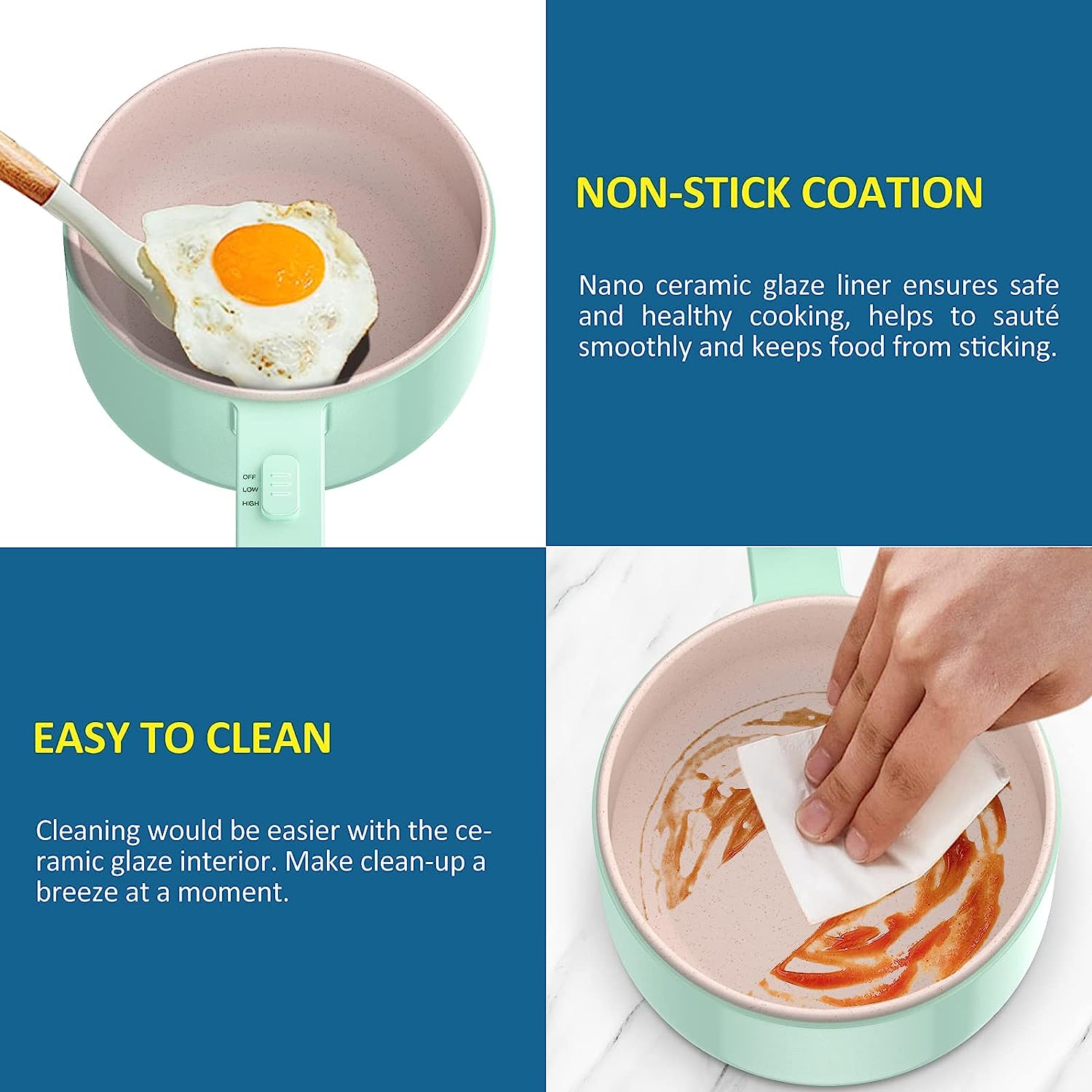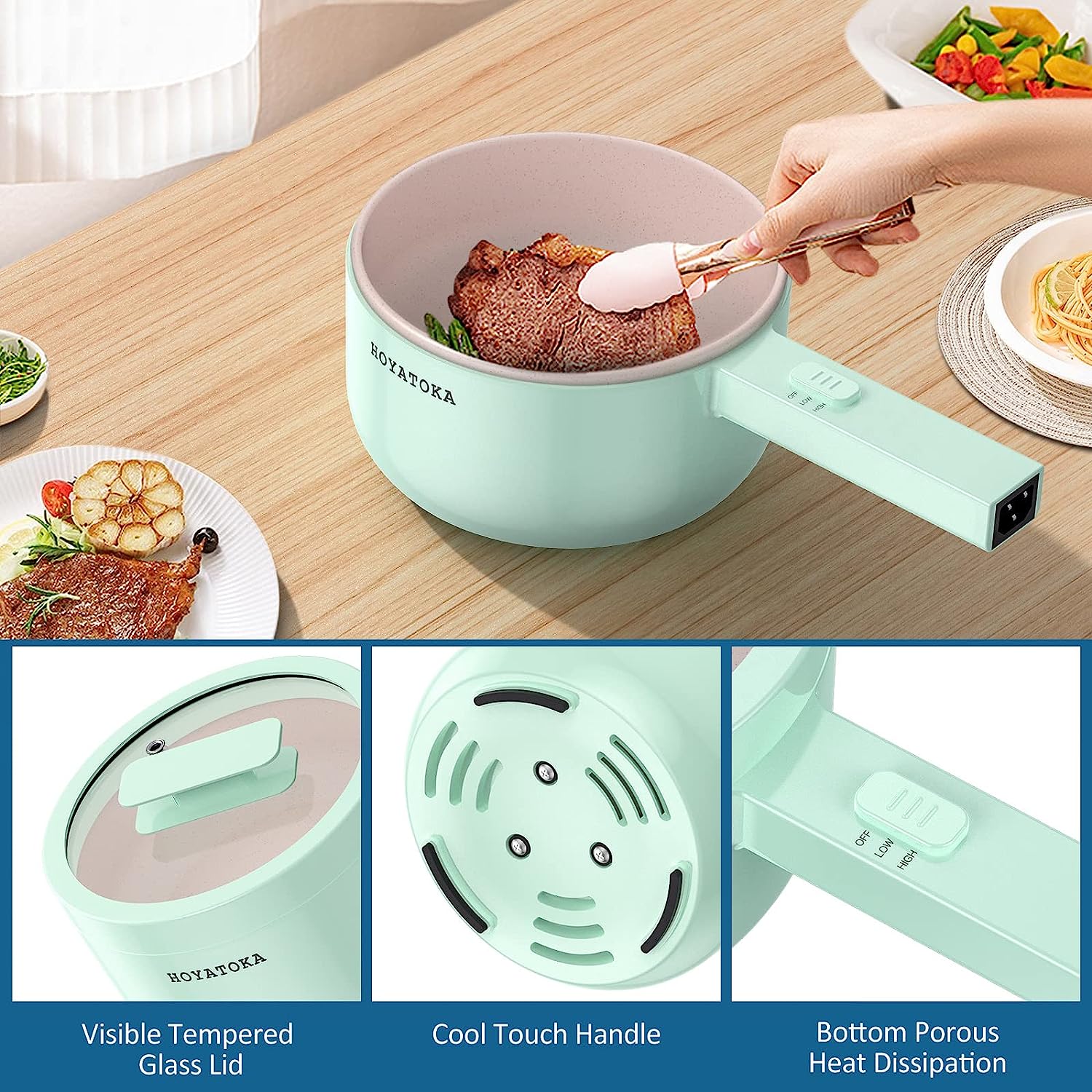 • 【Healthy Cooking & Easy Cleaning】The ceramic glaze interior of Hoyatoka small electric cooker is made of food-grade non-stick coating to guarantee healthy cooking and easy cleaning. The premium material helps to sauté smoothly with less oil and keeps food from sticking. Simply clean up the small hot pot with water and a sponge after cooking, enjoy an effortless release and easy cleaning.