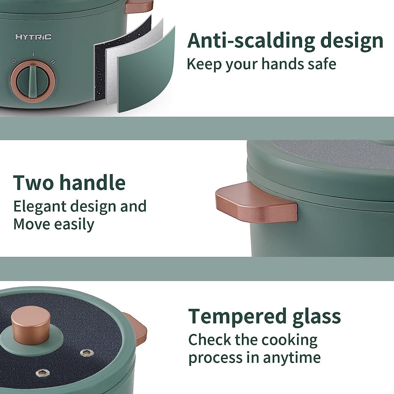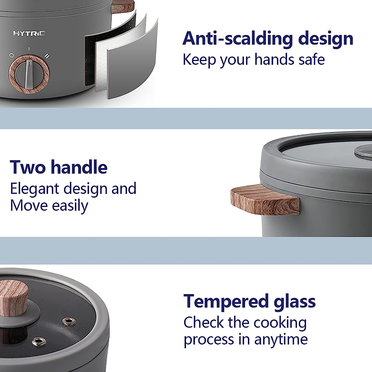 • Rapid Heating and Safe - We use round-shaped embedded heating element technology on our electric cooker. This technology will keep your food heated evenly, not only make your tasty foods done more rapidly than traditional stove kitchenware but also prevent the foods burning. In addition, Hytric electric cooker has overheating protection, it will automatically power off when the pot at the dry burning and overheating status.