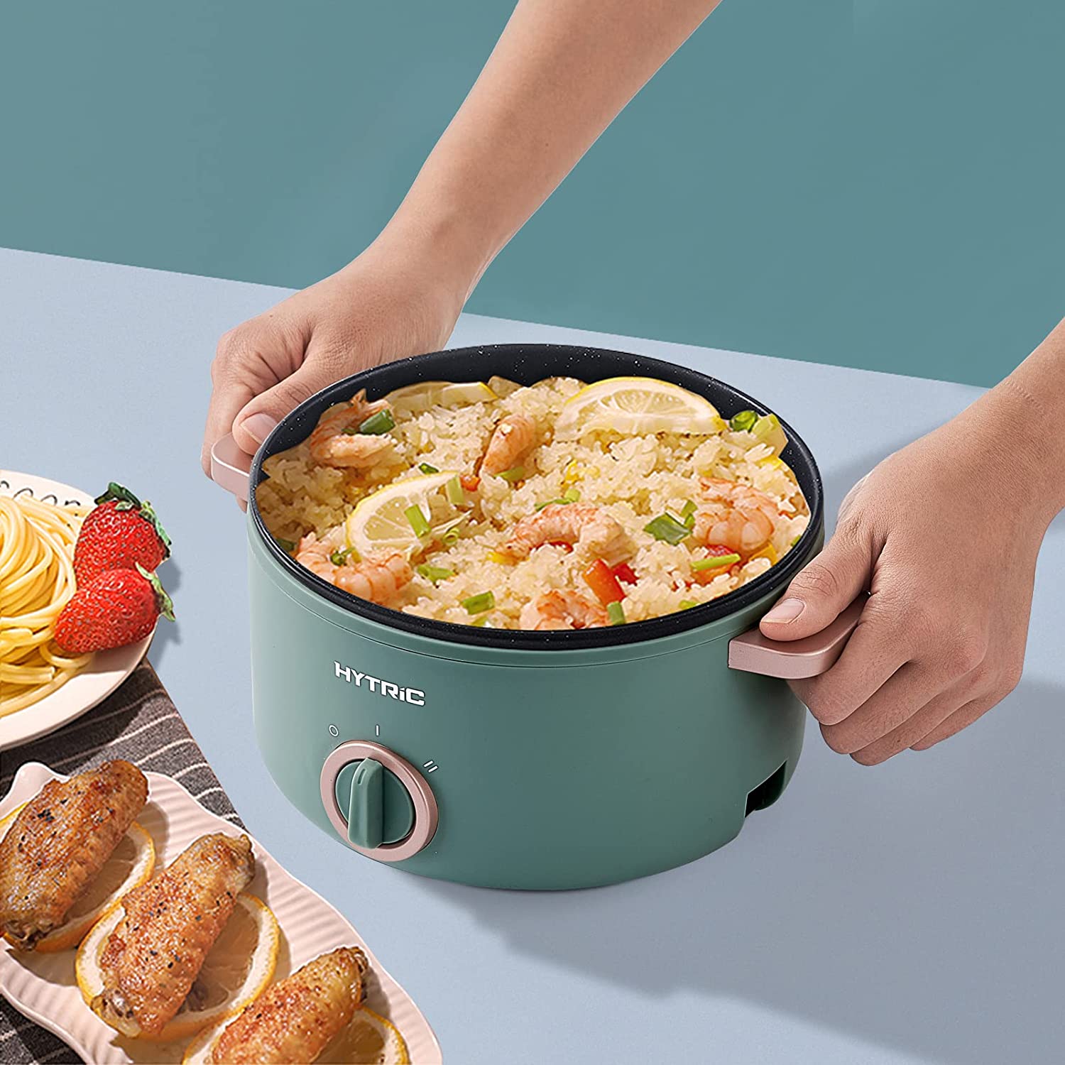 Hytric Electric Cooker with Handle, 1.5L Mini Multifunction Electric Cooker for Shabu-Shabu, Stir Fry, Noodles, Pasta, Nonstick Frying Pan for Sauté, Dual Power Control Ramen Cooker for Dorm and Office