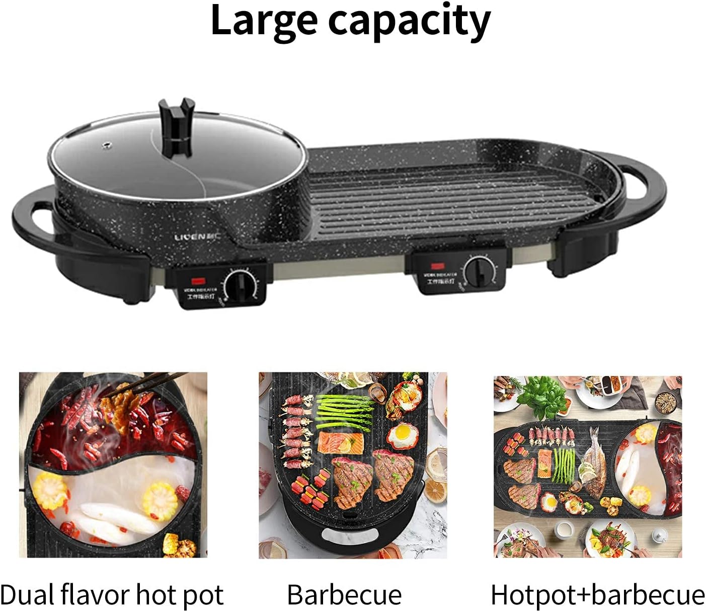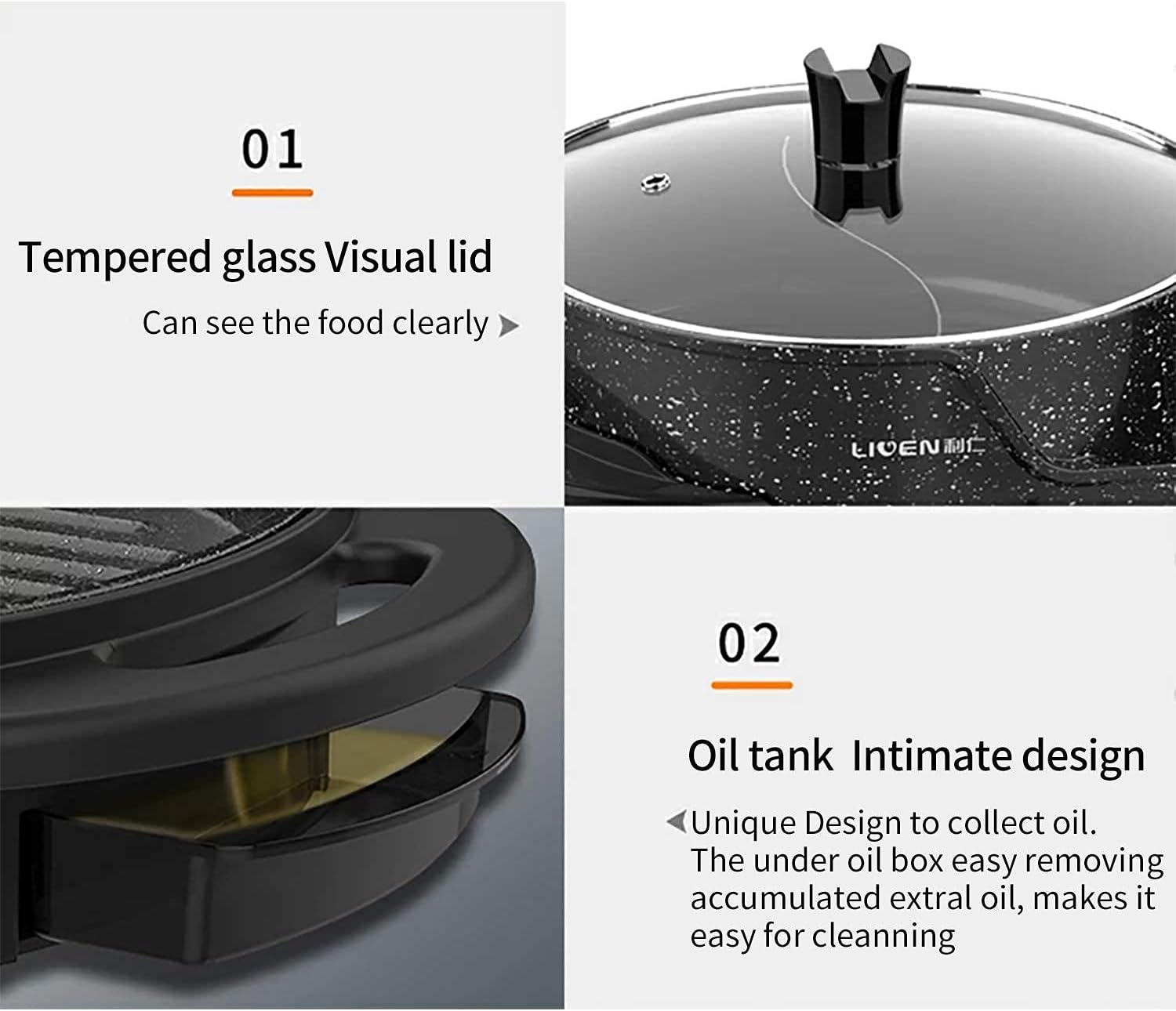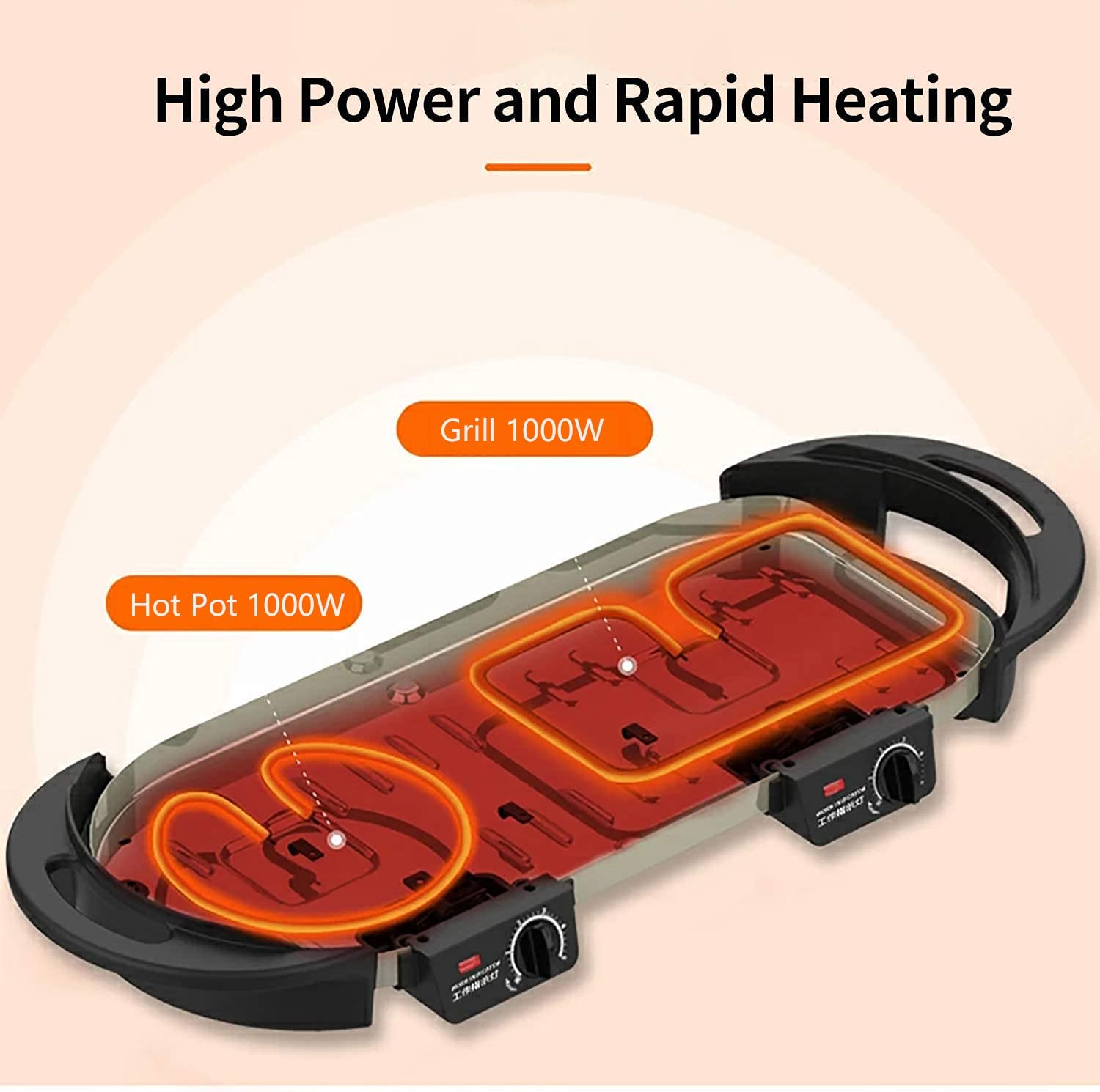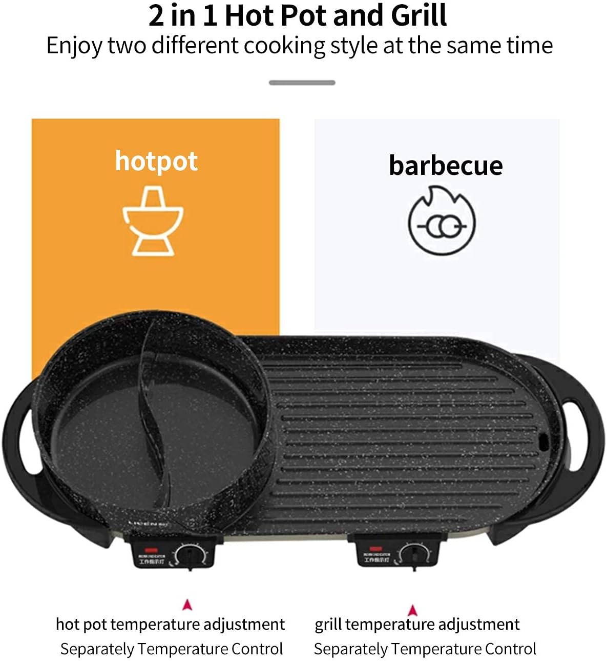 • ★【Dual Temprerature】:Independent temperature adjustment control for grill and hot pot respectively, enjoy grill or hot pot mode as your wish.