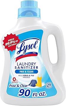 Lysol Laundry Sanitizer Additive, Free & Clear, Free from Fragrance and Dyes, 0% Bleach Laundry Sanitizer, Bacteria-causing Laundry Odor Eliminator, Unscented, 90 Fl Oz (Pack of 1) - Package May Vary