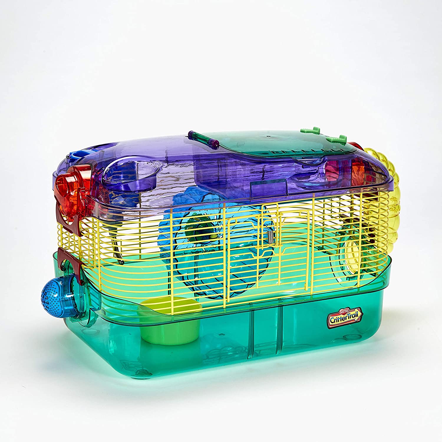 Offers spacious living for all hamsters, gerbils or mice. Comes complete with water bottle, food dish, exercise wheel and Funnels climbing tube. Size: 15. 9 x 9. 8 x 11in.