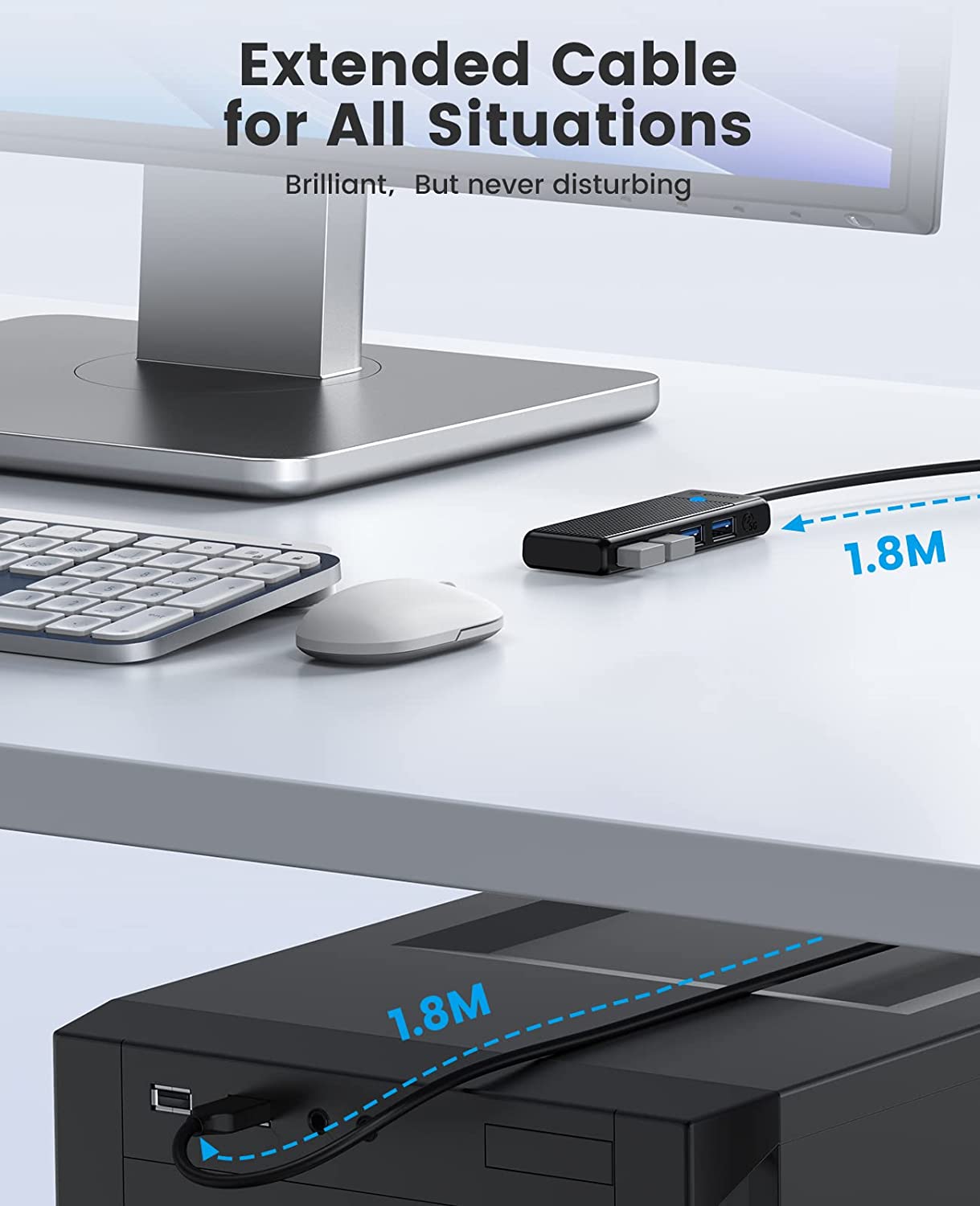 • Super Slim and Portable-The thin, lightweight design make this hub a great travel companion to expand one USB 3.0 port into four no matter where you are: office, cafes, outdoors, or forests away from the city, you can work freely anywhere.