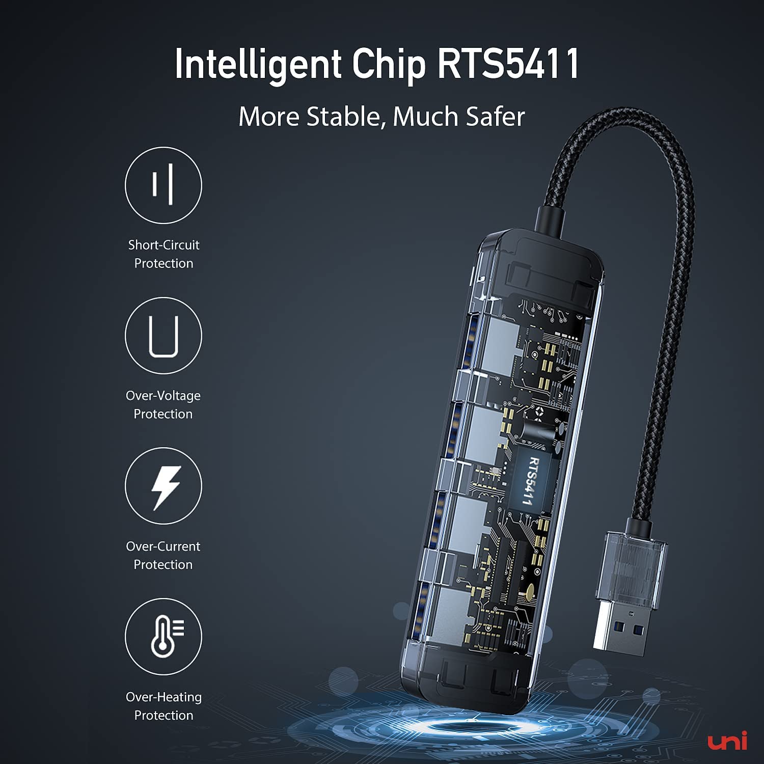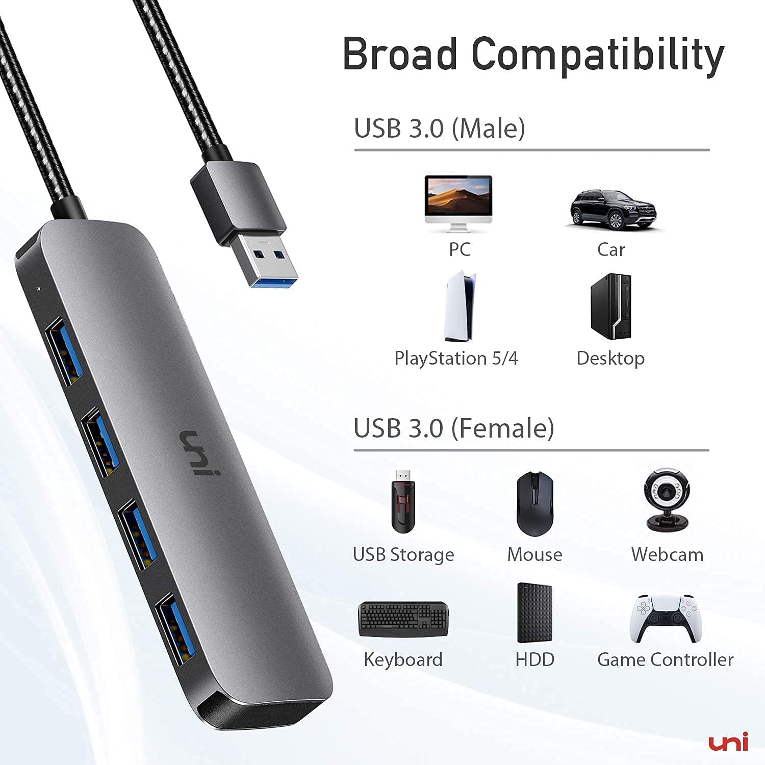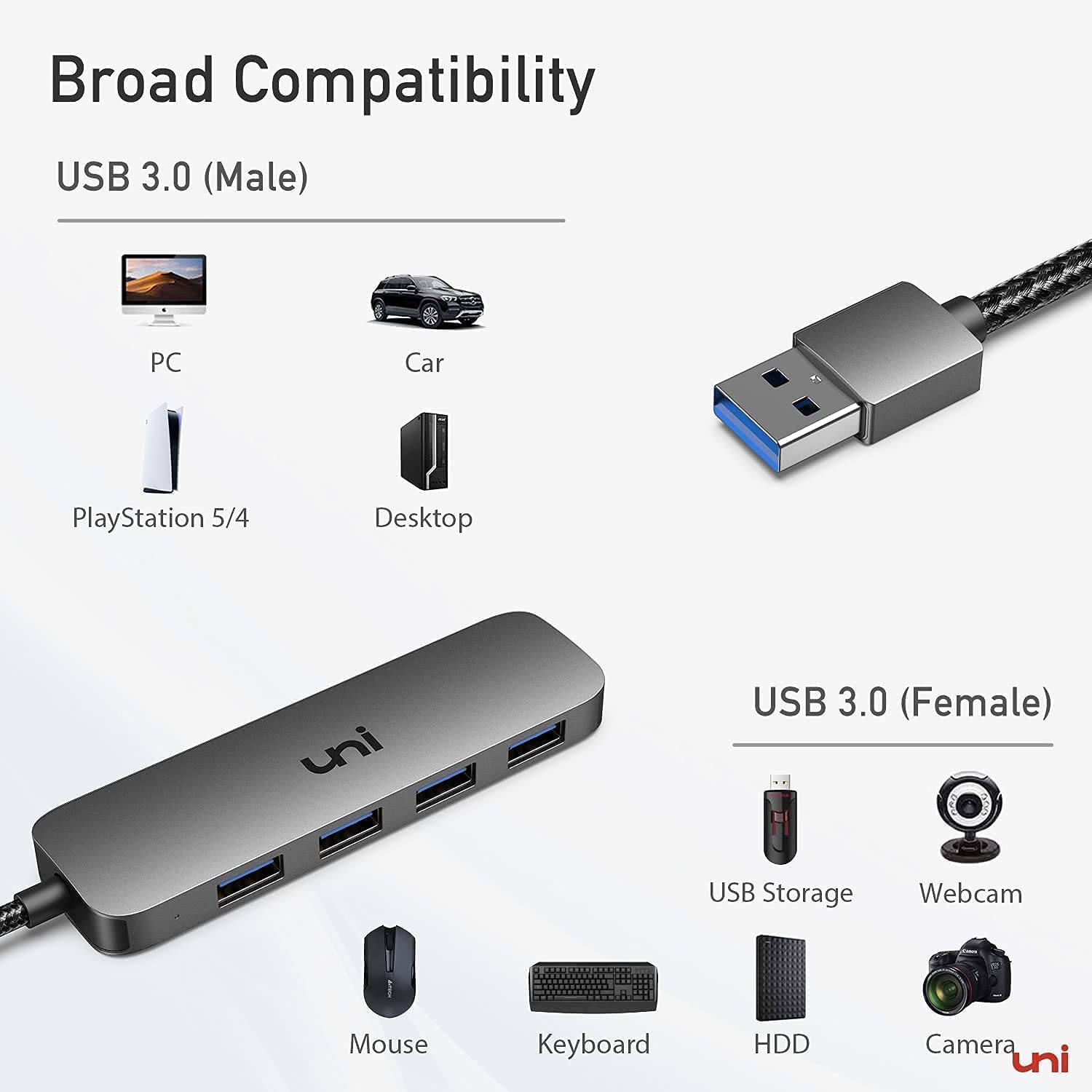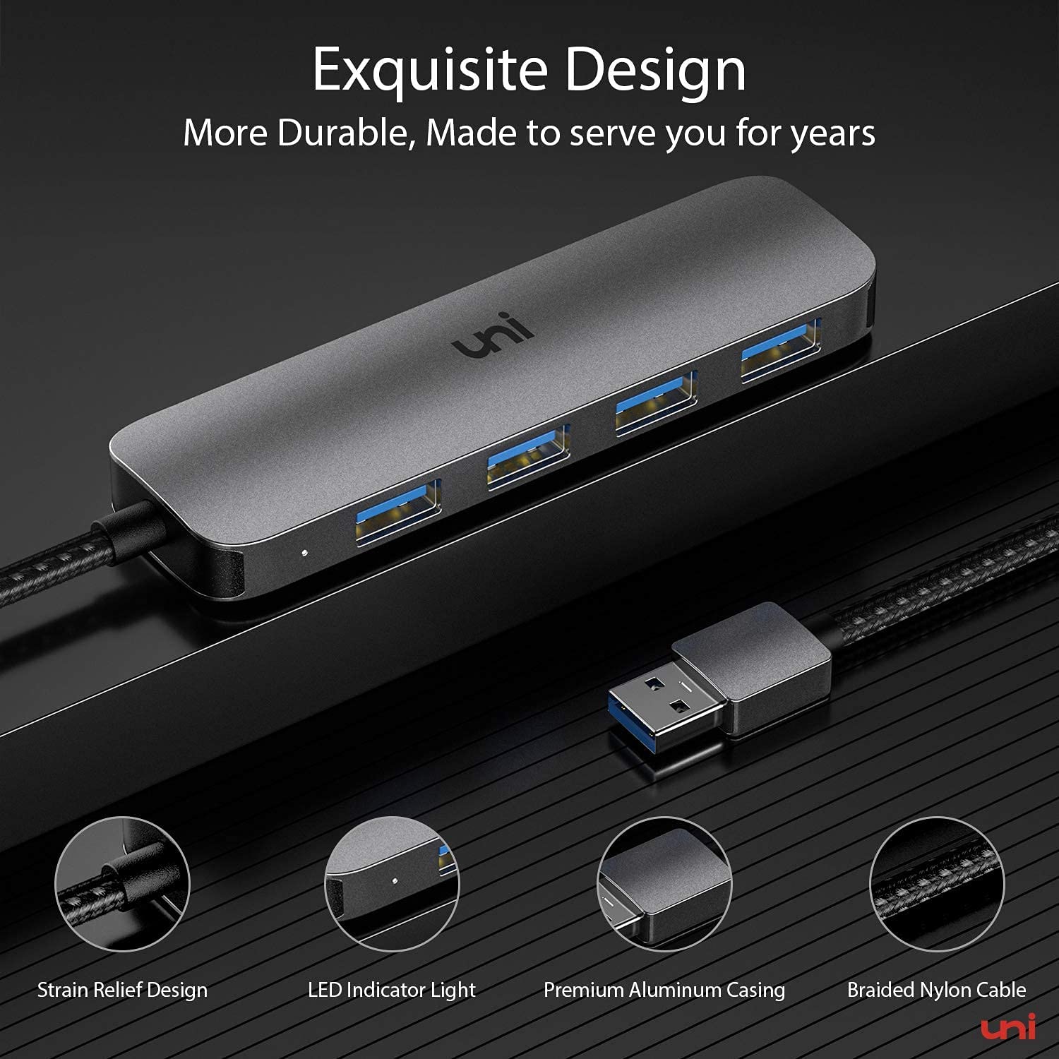 USB Hub 3.0, uni 4-Port USB Splitter for Laptop, Ultra-Slim Multiple USB Port Expander Compatible with Keyboard and Mouse Adapter, PC, MacBook Air, Mac Pro, iMac, Surface Pro, Flash Drive, Mobile HDD