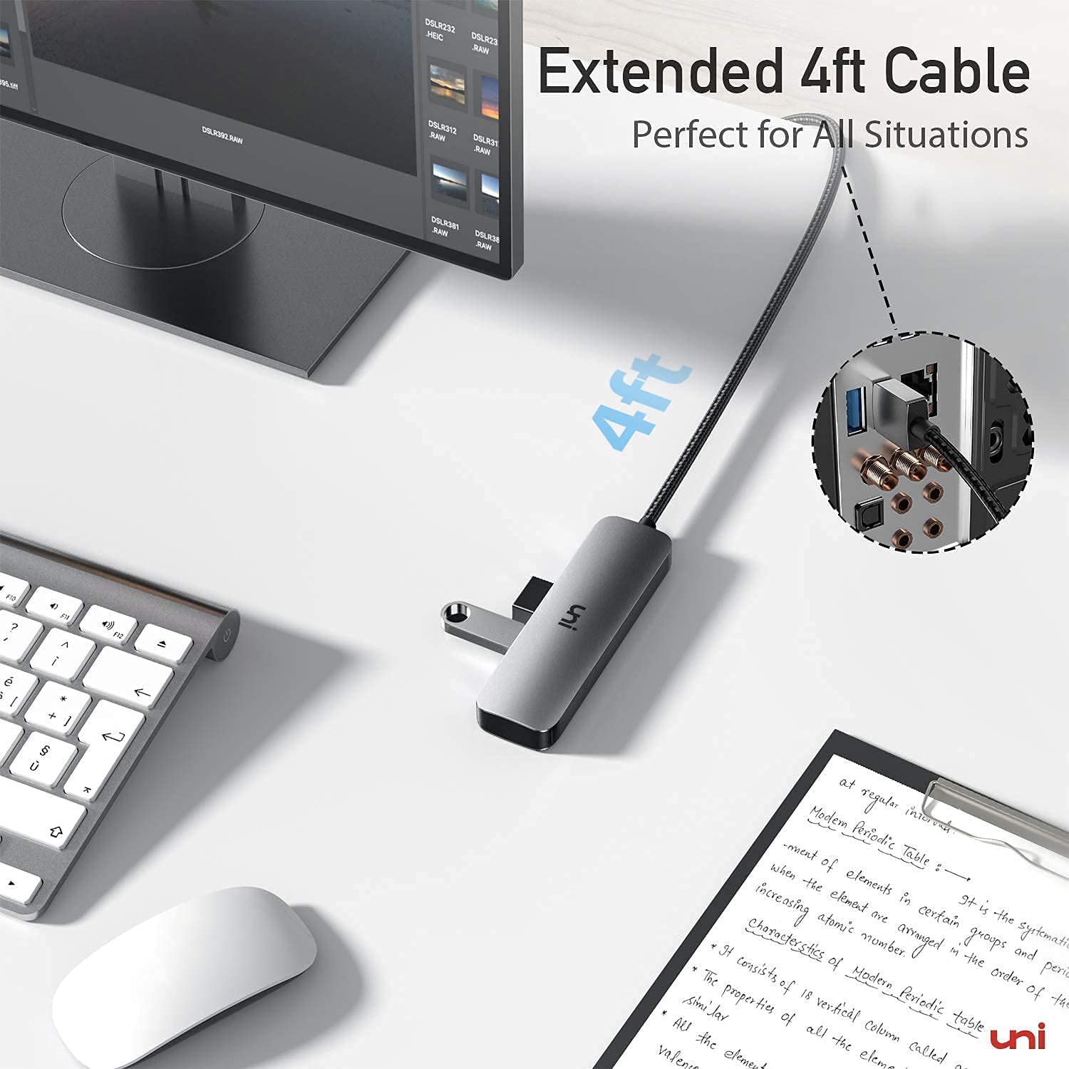 • Safe & Durable Design: The built-in smart chip protects against overcurrent, overvoltage, short circuits, and overheating. The aluminum shell, with its attractive metallic finish, offers better heat dissipation than PVC. The flexible, braided nylon cable provides extra durability. This compact, lightweight hub is perfect for business trips, traveling, and work.