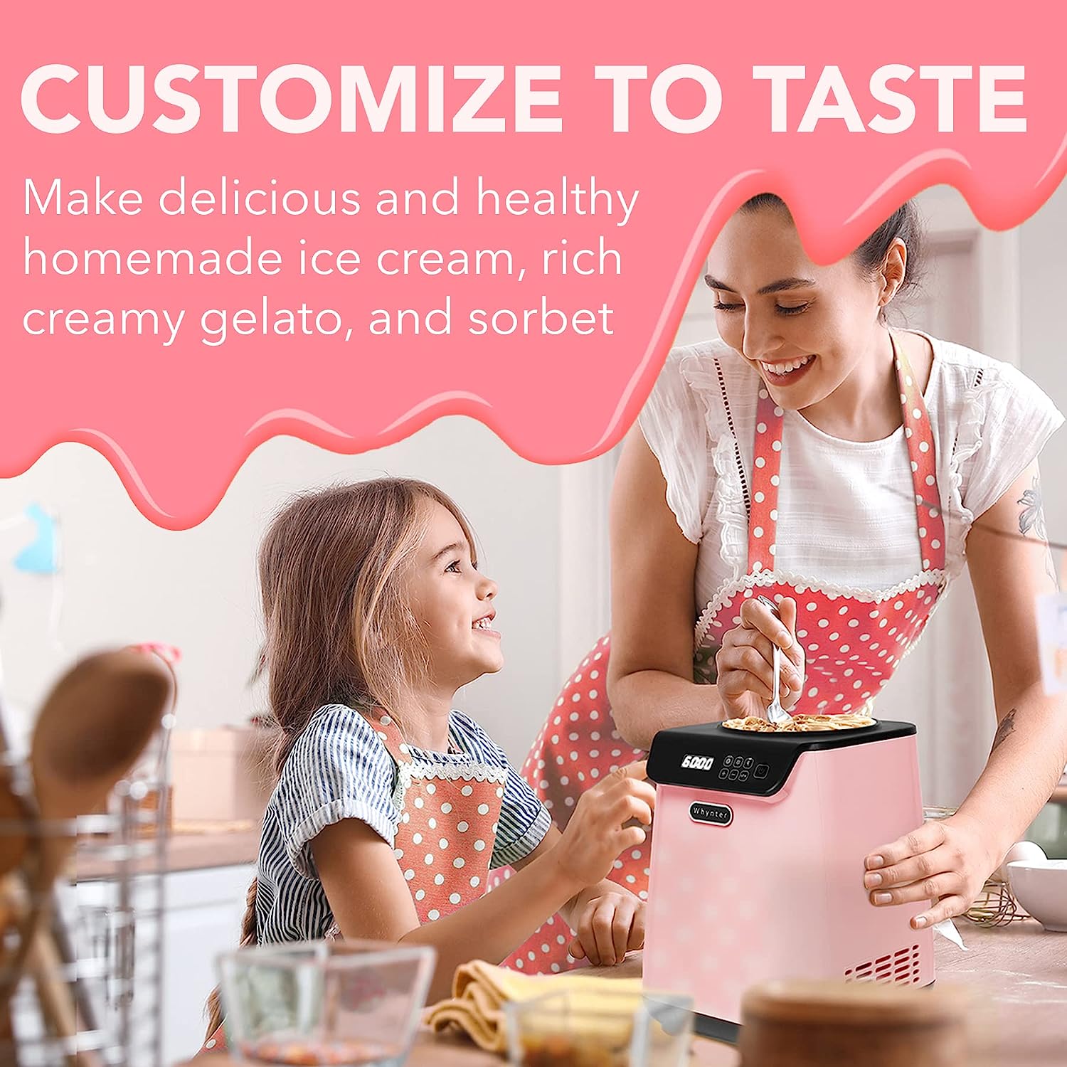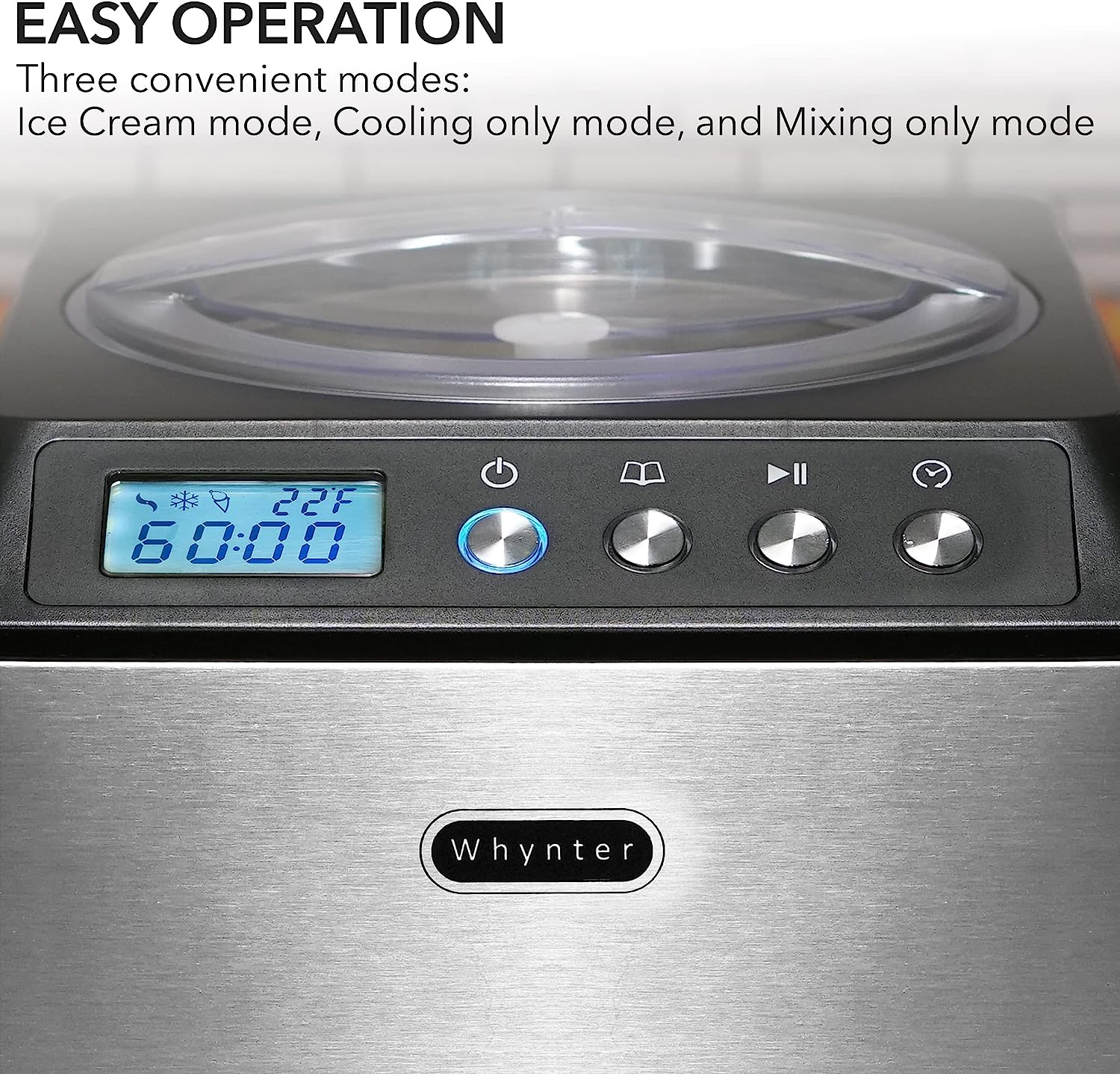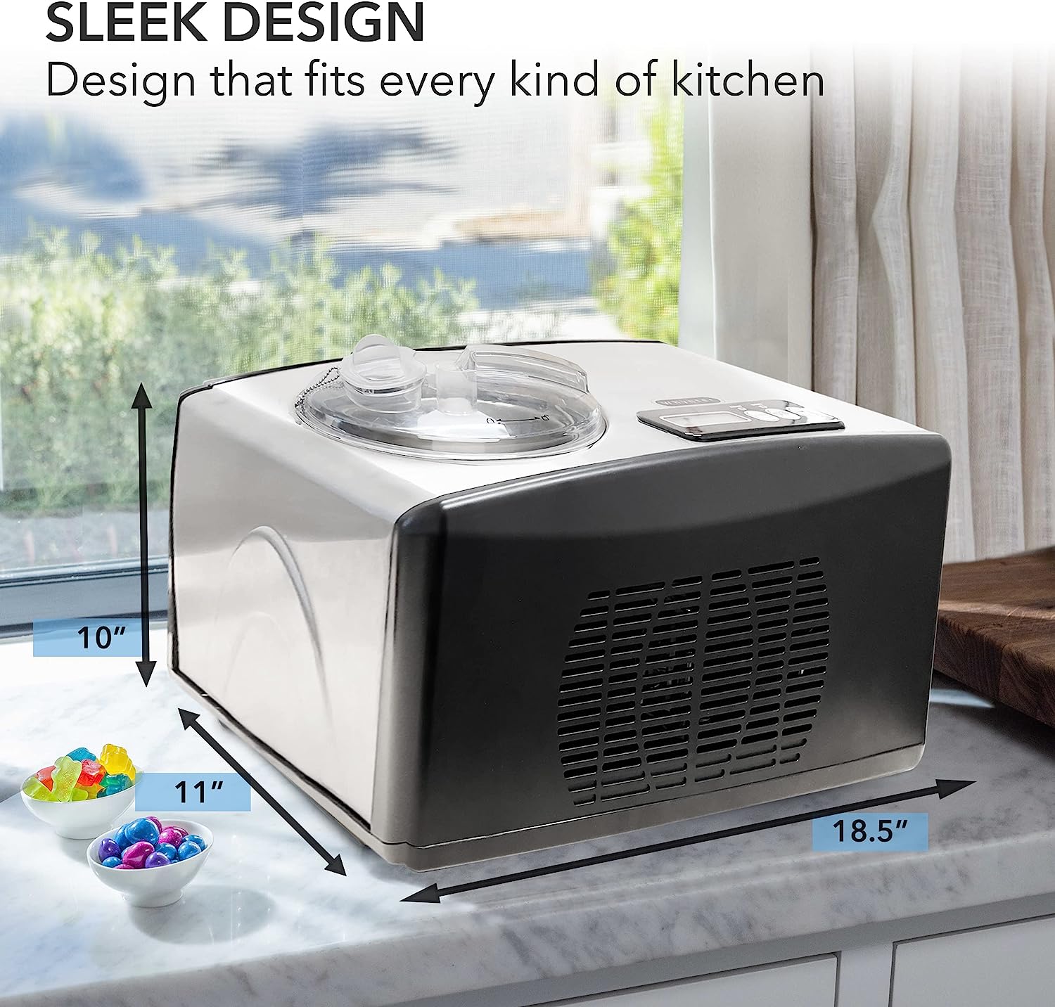 Make delicious ice cream, gelato, and sorbet at home with our ice cream machine. Small ice cream maker easily fits on countertops and includes a removable stainless steel mixing bowl and churn blade. Homemade ice cream maker features 3 modes: Ice Cream mode, Cooling Only mode, and Mixing Only mode, as well as pause function. Mini ice cream maker automatically prevents unwanted melting and stops the motor when mixture solidifies to prevent damage. Built-in compressor allows for continuous use.