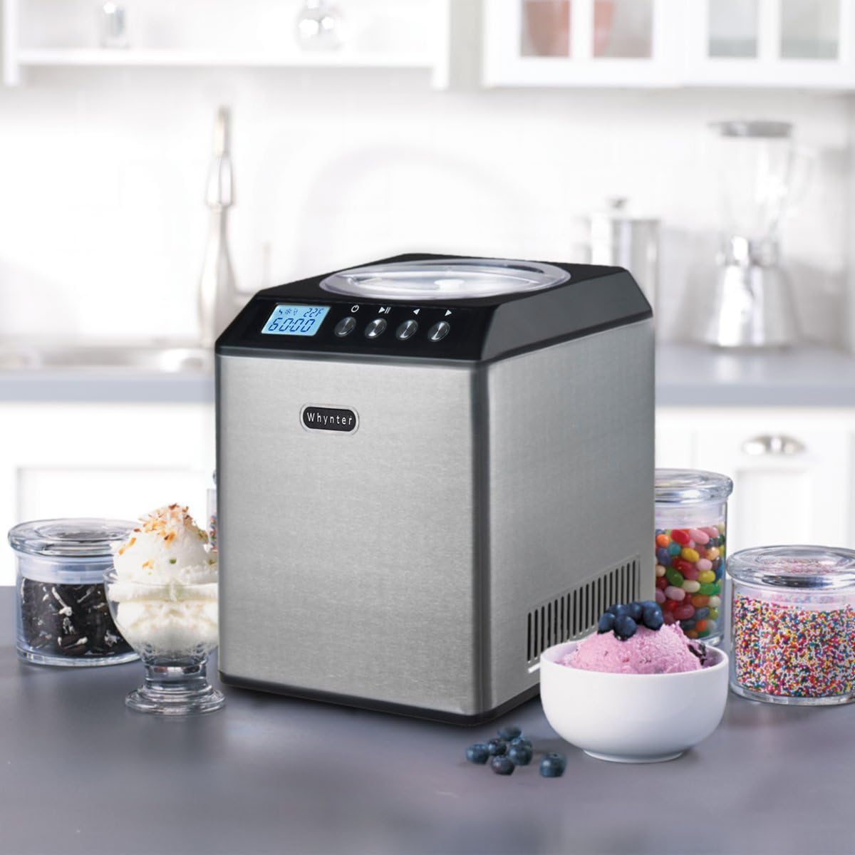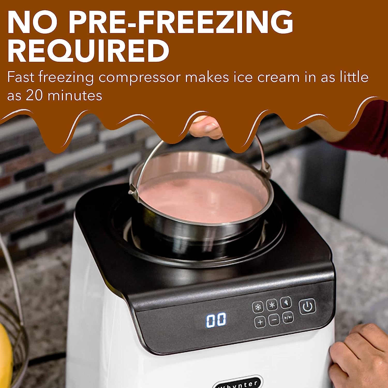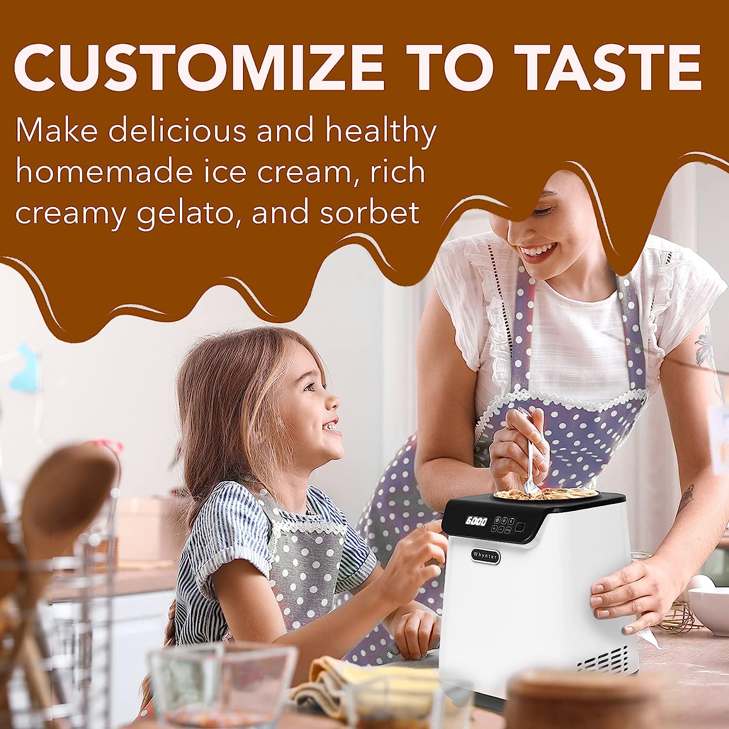 Make delicious ice cream, gelato, and sorbet at home with our ice cream machine. Small ice cream maker easily fits on countertops and includes a removable stainless steel mixing bowl and churn blade. Homemade ice cream maker features 3 modes: Ice Cream mode, Cooling Only mode, and Mixing Only mode, as well as pause function. Mini ice cream maker automatically prevents unwanted melting and stops the motor when mixture solidifies to prevent damage. Built-in compressor allows for continuous use.