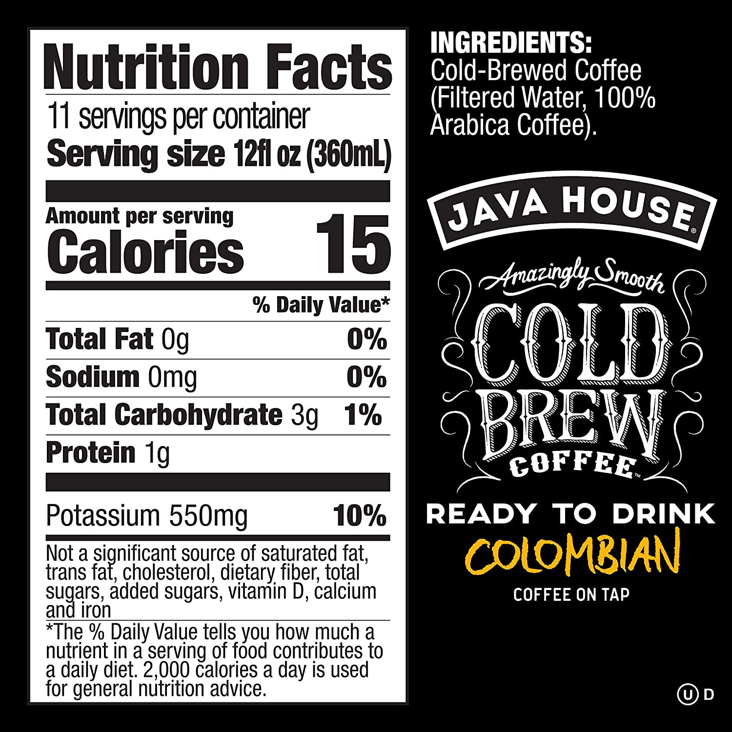 Java House Cold Brew Coffee On Tap, (128 Fluid Ounce Box) Not a Concentrate, No Sugar, Ready to Drink Liquid (Colombian Roast)