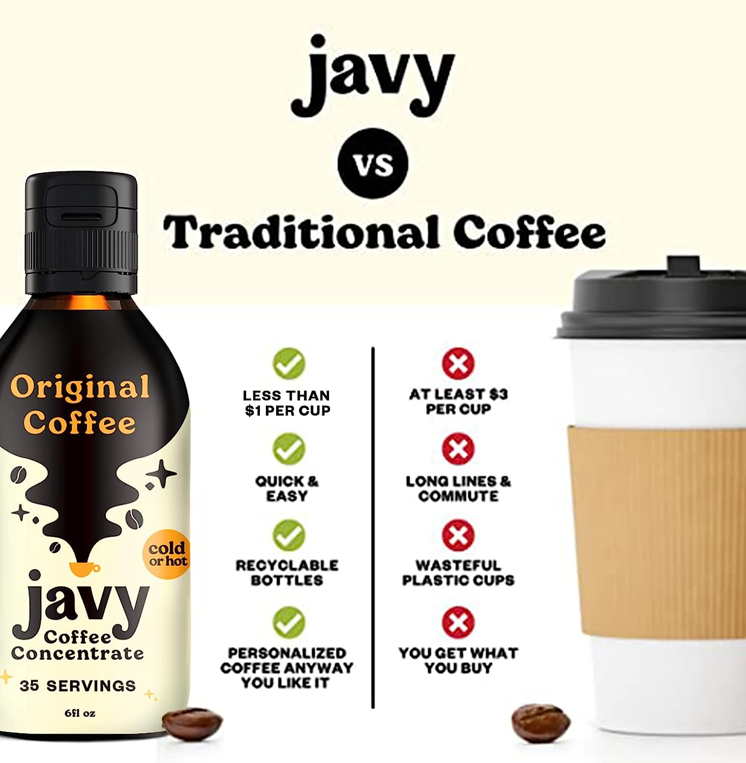 • ✅ BEST BANG FOR YOUR BUCK! - Want the same great coffee taste right at home without the expensive price tag? Each bottle contains up to 35 servings of coffee concentrate which is 3x more servings than our competitors. With Javy Coffee, you're only spending less than $1/cup meaning you get to enjoy premium specialty coffee every day without breaking the bank!