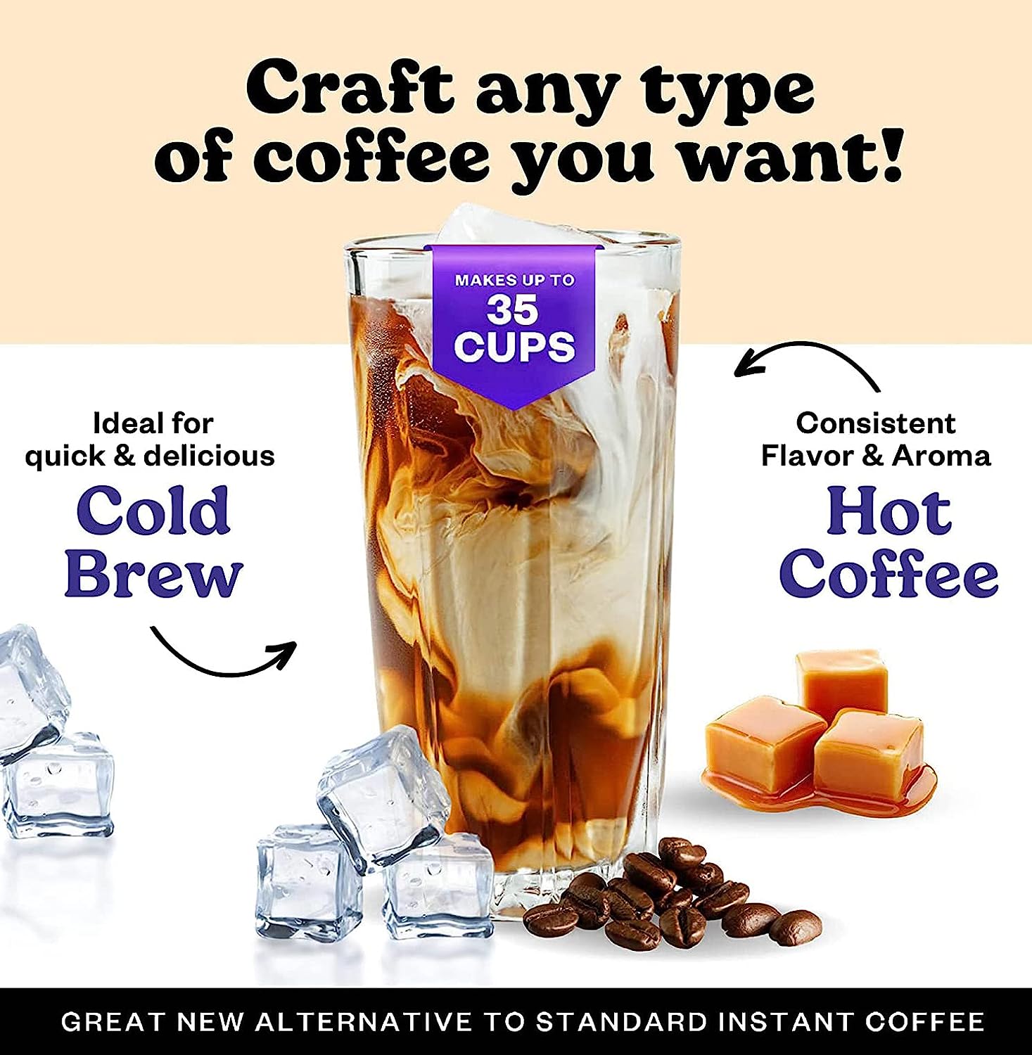 • ✅ MAKE 35 CUPS WITH 80mg of CAFFEINE PER SERVING- In just one teaspoon there is 80mg of caffeine which is equivalent to one cup of coffee with a consistent flavor profile. Waking the morning zombie has never been so easy and delicious.