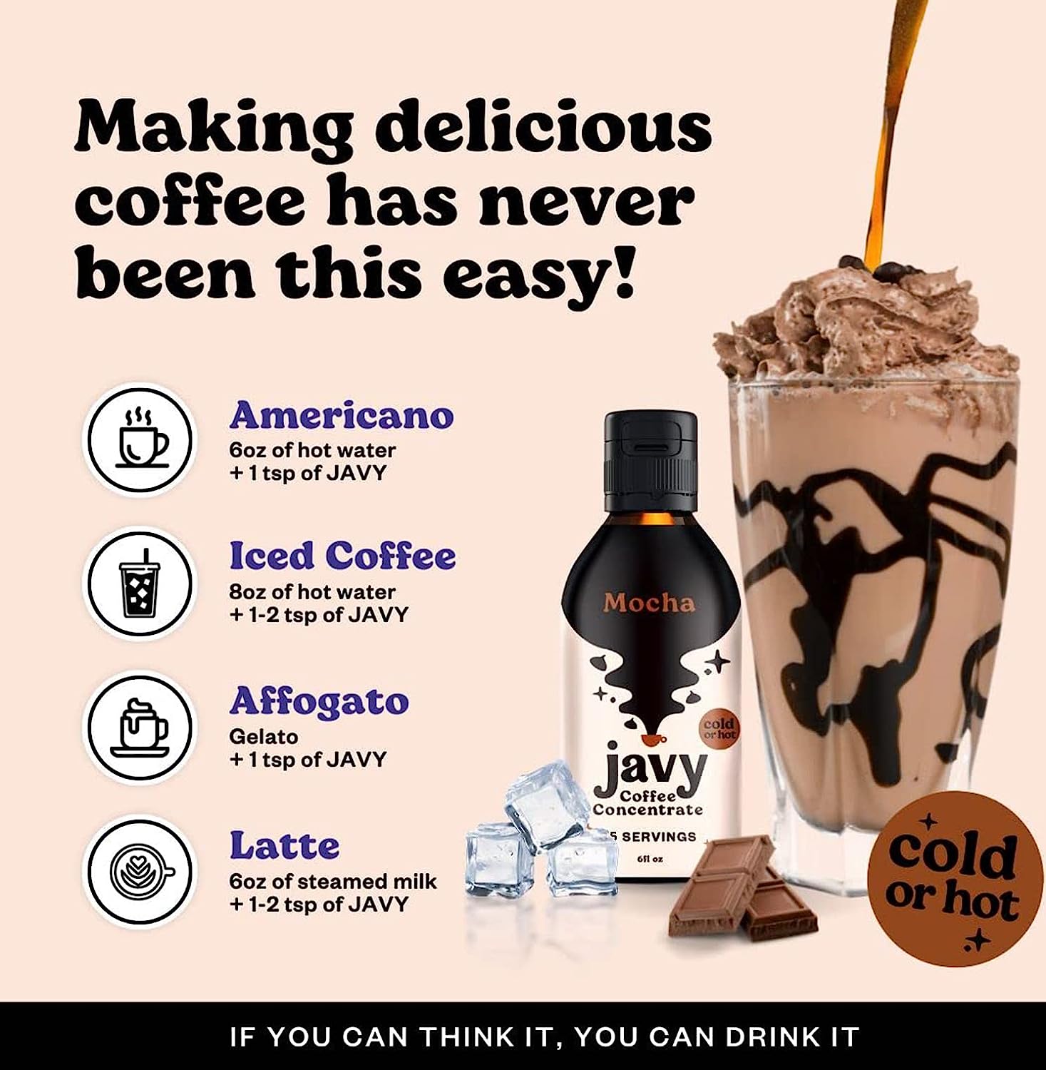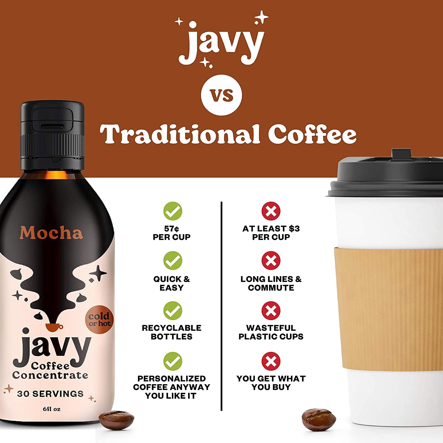 • ✅ SMART. SUSTAINABLE. STIMULATING - Quality comes first! Javy coffee concentrate is made of ultra-pure water, 100% arabica freshest beans and cacao extract sourced from small reliable farmers. There are no artificial additives involved during our proprietary brewing process.