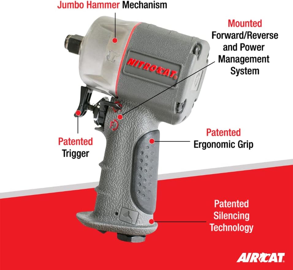 AirCat Pneumatic Tools 1056-XL: Nitrocat Composite Compact Impact Wrench 750 ft-lbs - 1/2-Inch