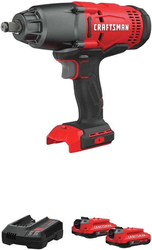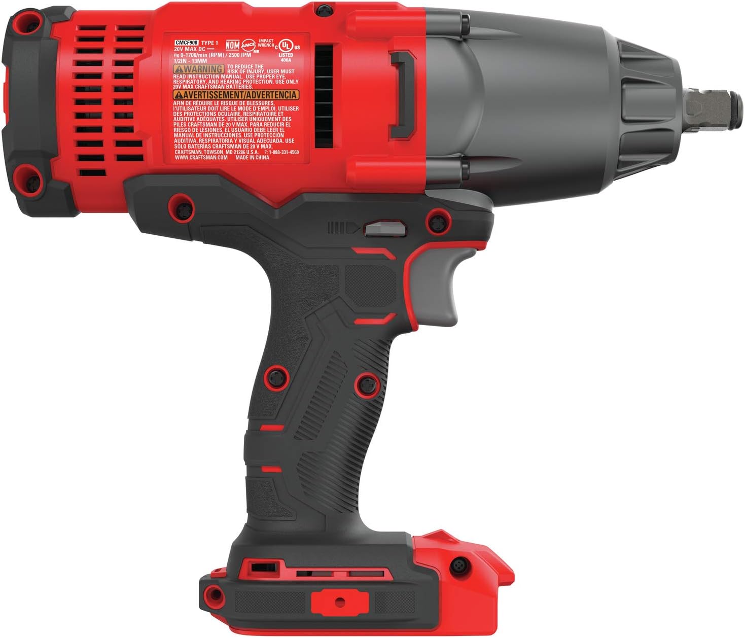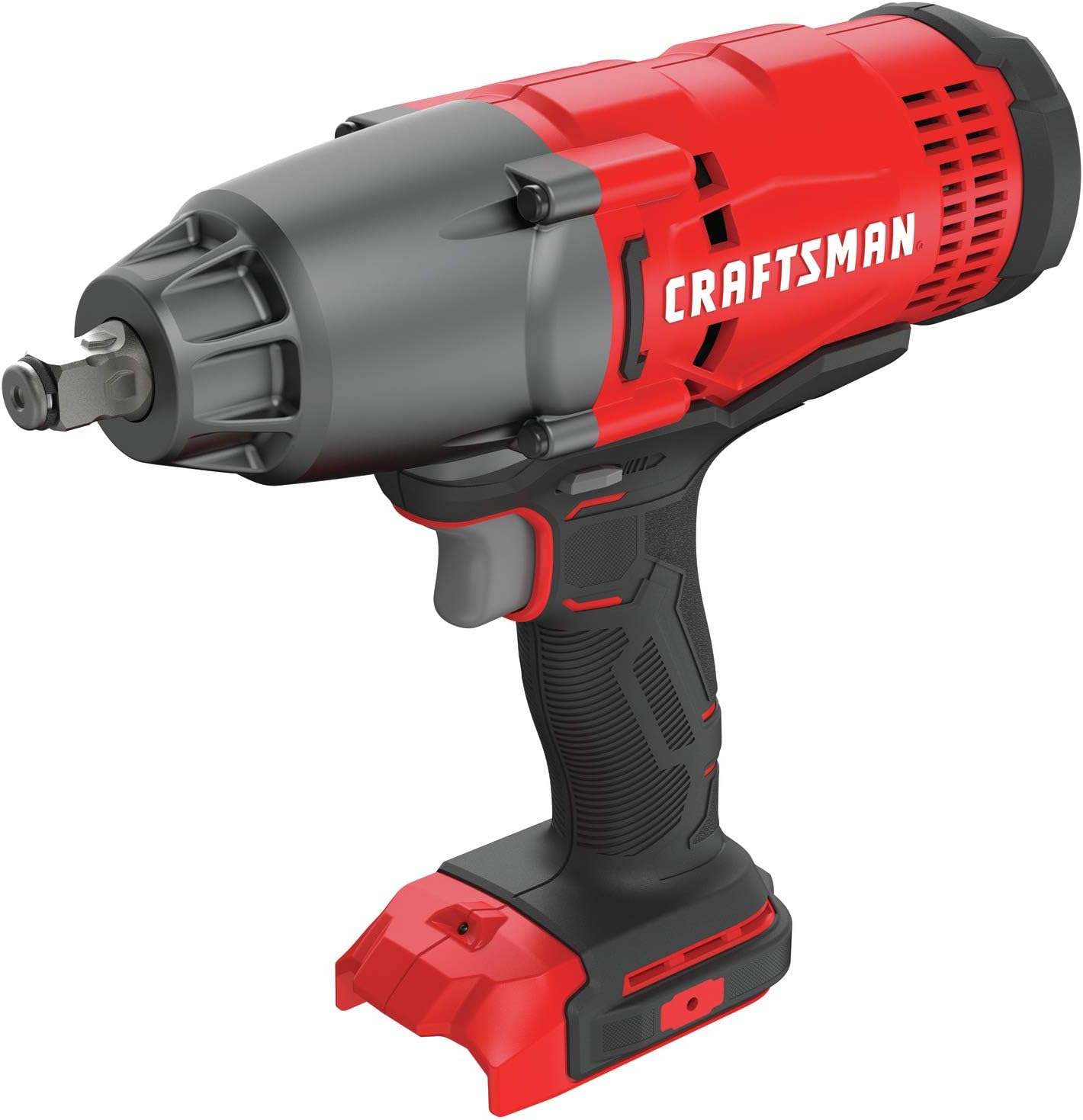 The CRAFTSMAN V20 1/2 in. Impact wrench has a max torque rating of 350 ftlbs for speed and easy of removing large fasteners. The hog ring anvil makes changes quick and easy.