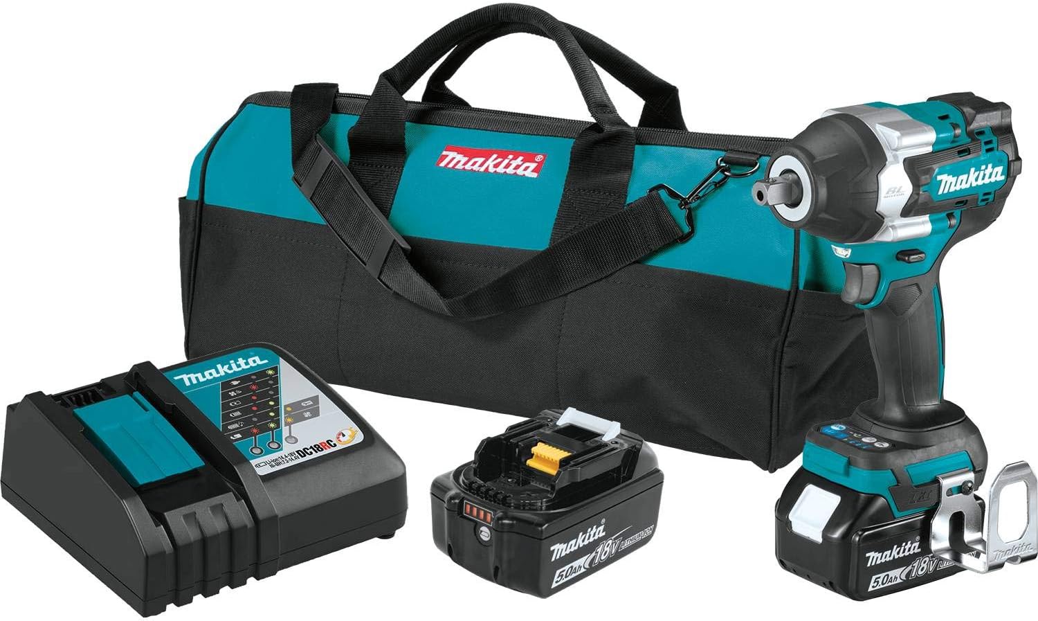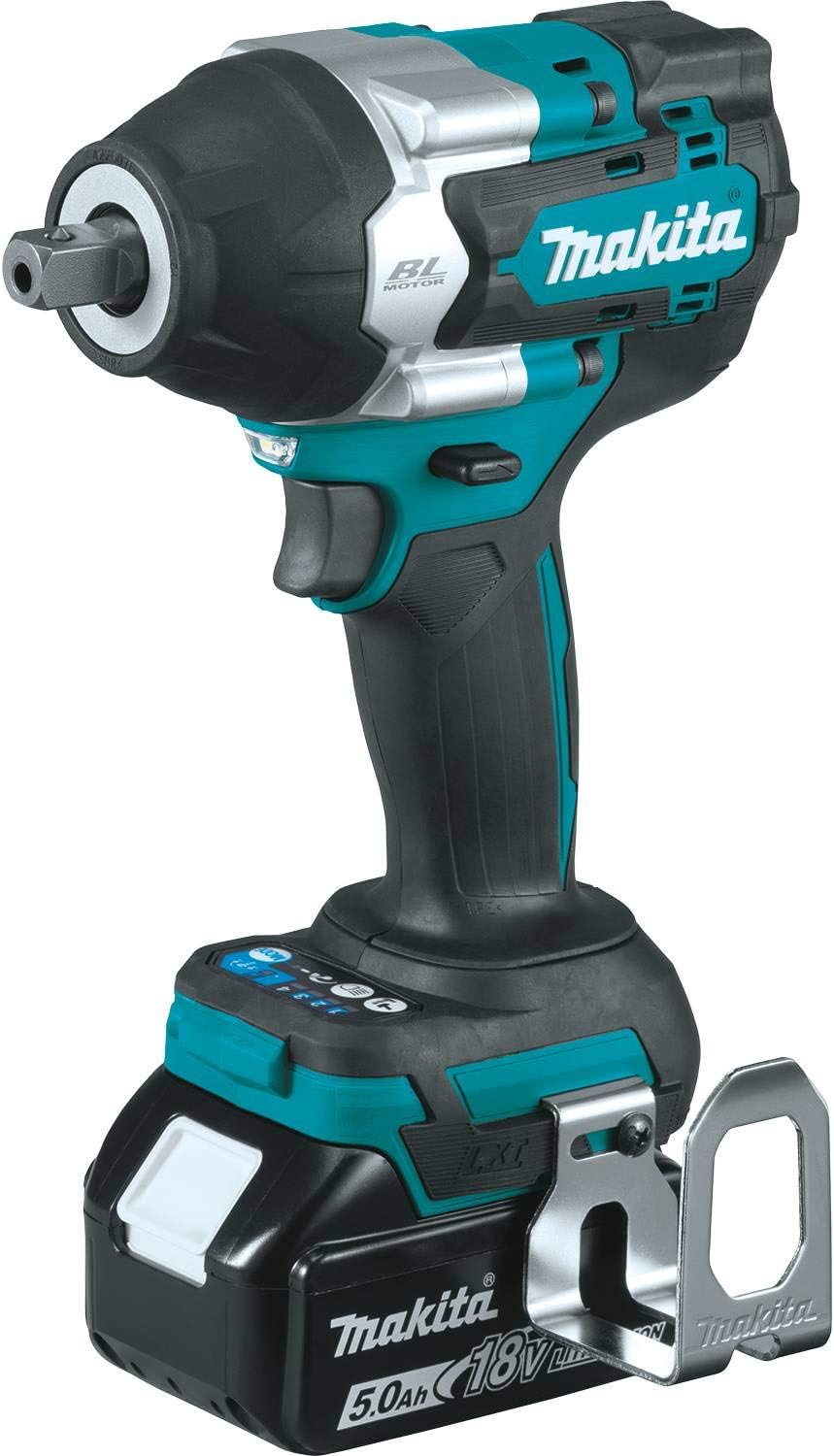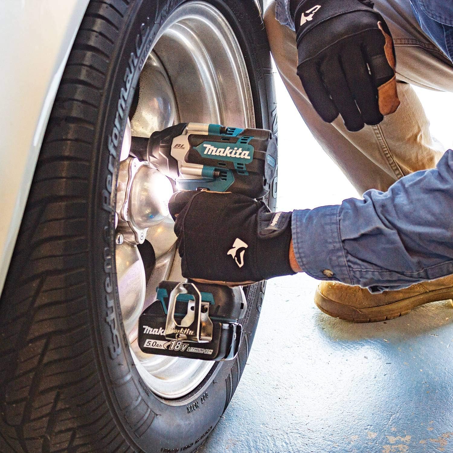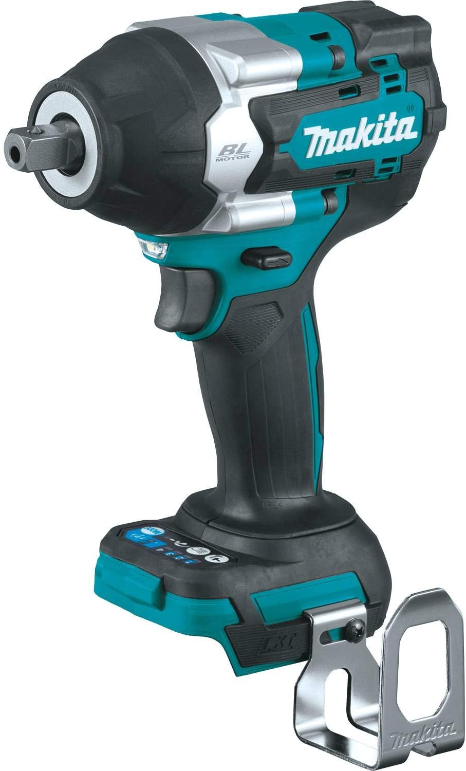 "The 18V LXT Lithium-Ion Brushless Cordless 4-Speed Mid-Torque 1/2"" Sq. Drive Impact Wrench with Detent Anvil, Tool Only (XWT18Z) provides improved fastening control, ideal for automotive, installation, and fabrication trades. The impact wrench combines extended run time and speed control for unmatched fastening performance. It is powered by a Makita-built brushless motor for longer run time. The brushless motor delivers 520 ft.lbs. of Fastening Torque and 740 ft.lbs. of Nut-Busting Torque. Precise fastening control is achieved through the 4-speed power selection switch, which accounts for a wide range of applications. Additional precision features include three forward and three reverse rotation auto-stop modes, and a full-speed mode function that reduces the trigger pull to reach full speed. Makita's proprietary hammer and anvil impact mechanism are manufactured using the best raw materials with the highest quality steel and unique heat hardening process for maximum fastening and driving power. The XWT18Z features Makita's Extreme Protection Technology (XPT), a protective seal inside the tool. It is designed to improve a tool’s operation in harsh conditions by channeling water and dust from key internal components. It is part of Makita’s 18V LXT System. The LXT Cordless System, the world’s largest cordless tool system powered by 18V lithium-ion slide-style batteries, takes a user from power tools to outdoor power equipment to get the job done. Makita 18V LXT Batteries have the fastest charge times in their categories, so they spend more time working and less time sitting on the charger. For improved tool performance and extended battery life, Makita created Star Protection Computer Controls. Star Protection is communication technology that allows the Star Protection-equipped tool and battery to exchange data in real time and monitor conditions during use to protect against overloading, over-discharging and overheating. For increased versatility, the tool can also be powered by Makita 18V LXT Lithium-Ion Batteries with the star symbol on the battery indicating Star Protection inside."