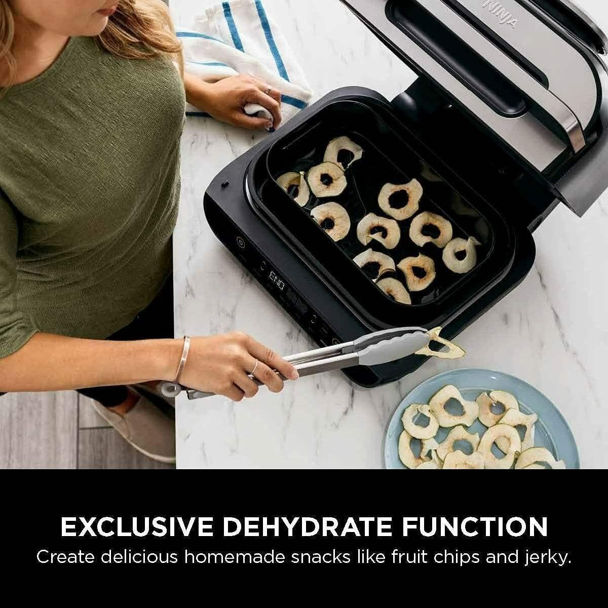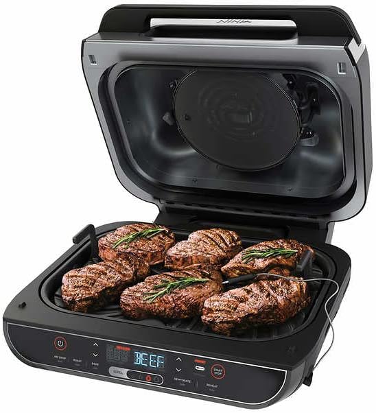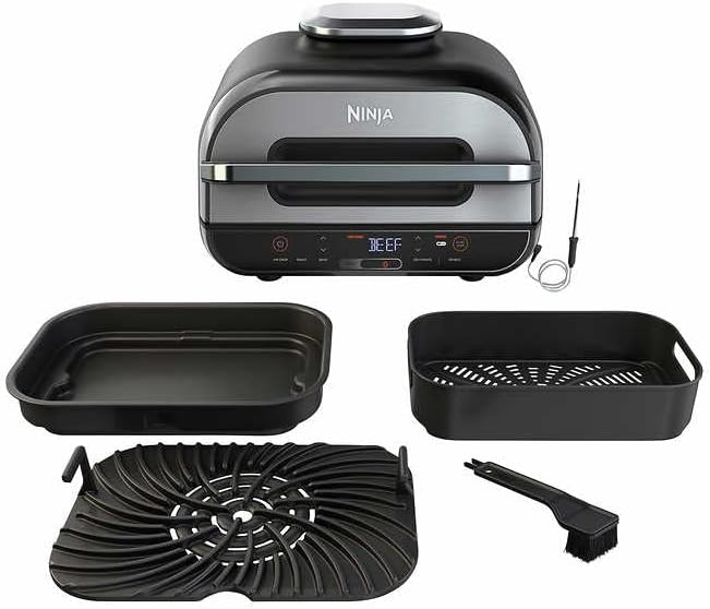 The Ninja® Foodi® Smart XL Grill is the SMART XL grill that sears, sizzles and air fry crisps. With an XL capacity and innovative Smart Cook System, you can grill even more and achieve the perfect doneness from rare to well done at the touch of a button.