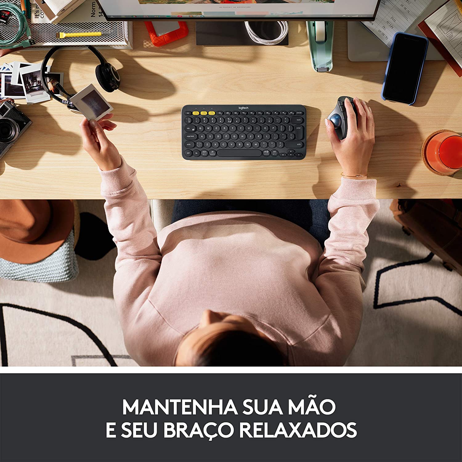 WORK IN YOUR COMFORT ZONE Minimize movement and maximize comfort with ERGO M575 - a wireless trackball with a sculpted ergonomic shape. With no need to move your arm around to move the cursor, your hand and arm stay relaxed. The smooth and responsive thumb control can be used anywhere - and since it doesn't need to be moved - ERGO M575 is perfect for tight desk spaces.SHAPED FOR HANDS LIKE YOURS ERGO M575 has been designed and developed to ergonomically fit the shape of your hand. And with no need to move your arm around to move the cursor you'll reduce fatigue in your hand and arm. THUMBS UP FOR THUMB CONTROL Get on a more ergonomic track with exceptionally precise trackball control. Your thumb will glide across the smooth ball surface with total ease thanks to transparent finish coating. And the high-performance optical sensor matches great accuracy with ultra-low power consumption. MORE SPACE FOR ALL YOUR (AWESOME) STUFF ERGO M575 features a super compact footprint since it doesn't move to control the cursor. It's ideal for tight workspaces, or for those of us that have desks full of papers, personal items - and sometimes even a bowl of cereal. EASY CONNECT WITH WINDOWS® AND MAC With two ways to connect - via Bluetooth® Low Energy or the included USB receiver - ERGO M575 provides a powerful, reliable signal from up to 10 m away.Connect to either Windows or macOS and never worry about drop-offs or laggy connections. A DESIGN CHOICE YOU'LL FEEL GOOD ABOUT QUALITY THAT LASTS ERGO M575 is durable and reliable. With Swiss engineering and end-to-end control of the production process, it's designed to perform for more than 3 million quality clicks. MADE WITH RECYCLED PLASTIC The plastic parts in ERGO M575 include post consumer recycled plastic - 50% for Graphite and 21% for Off-white - to give a second life to end-of-life pla