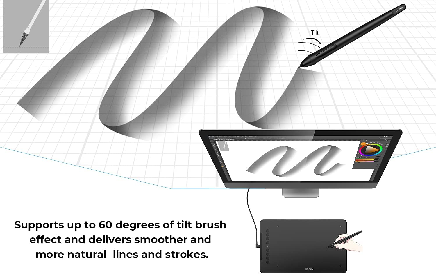• Drawing Pad-❤Tilt Supported❤Deco 01 V2 supports up to 60 degrees of tilt brush effect and delivers smoother and more natural lines and strokes, while also giving you the ability to add shading to your creation.