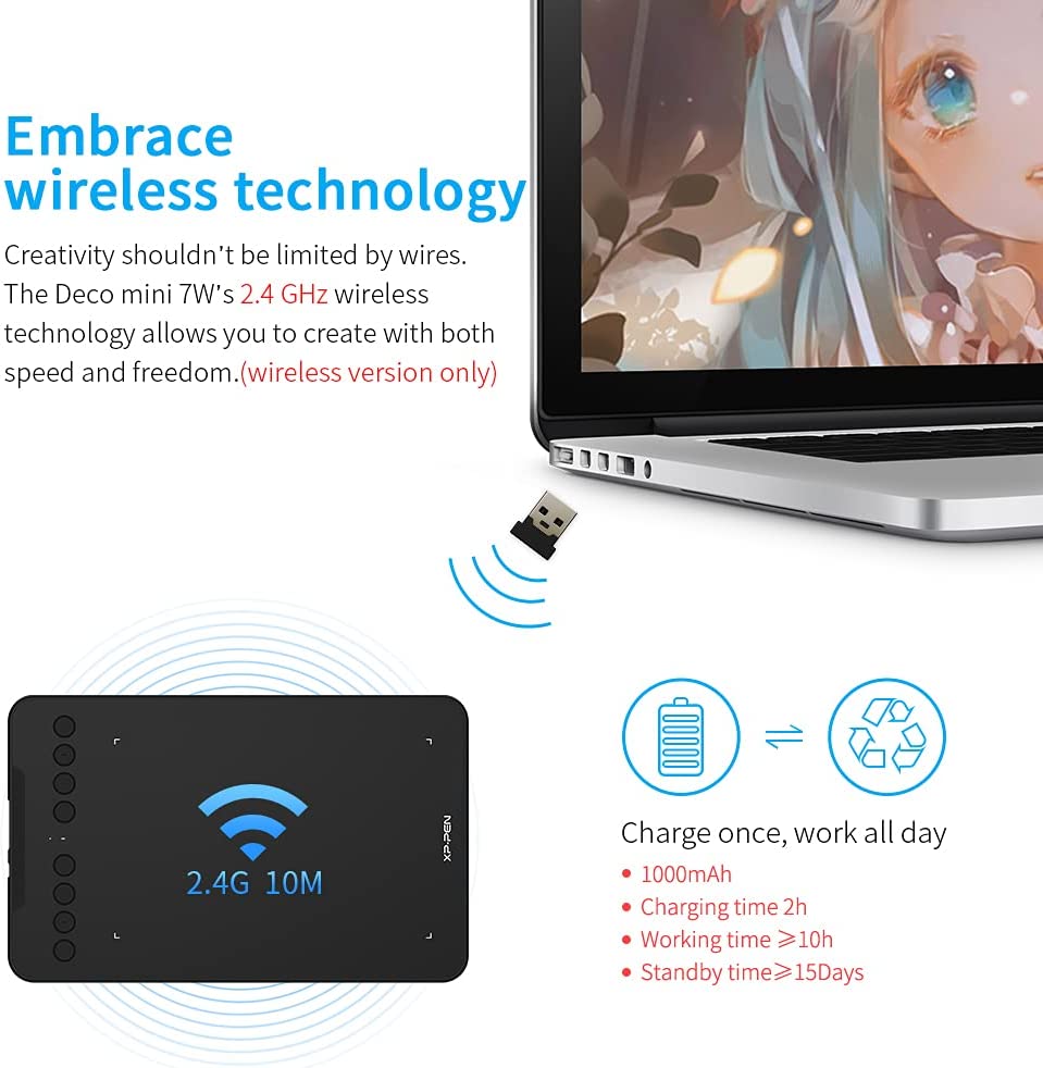 • Graphics Tablet-❤High Tech IC❤We’ve adopted the newest High Tech IC, to make lines flow smoother and perform better. The Deco lights up on the ends of the drawing area, so you can create, even in the dark.