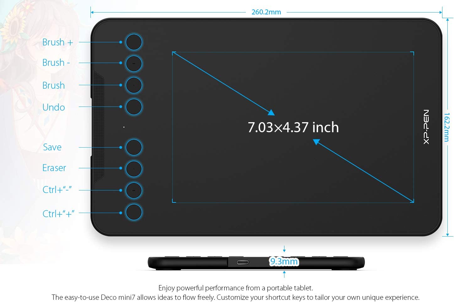 • Drawing Pad-❤Customized Shortcuts❤Designed for both right and left-hand users, 8 fully customizable express keys create a highly ergonomic and convenient work platform.The driver allows the shortcut keys to be attuned to many different software.