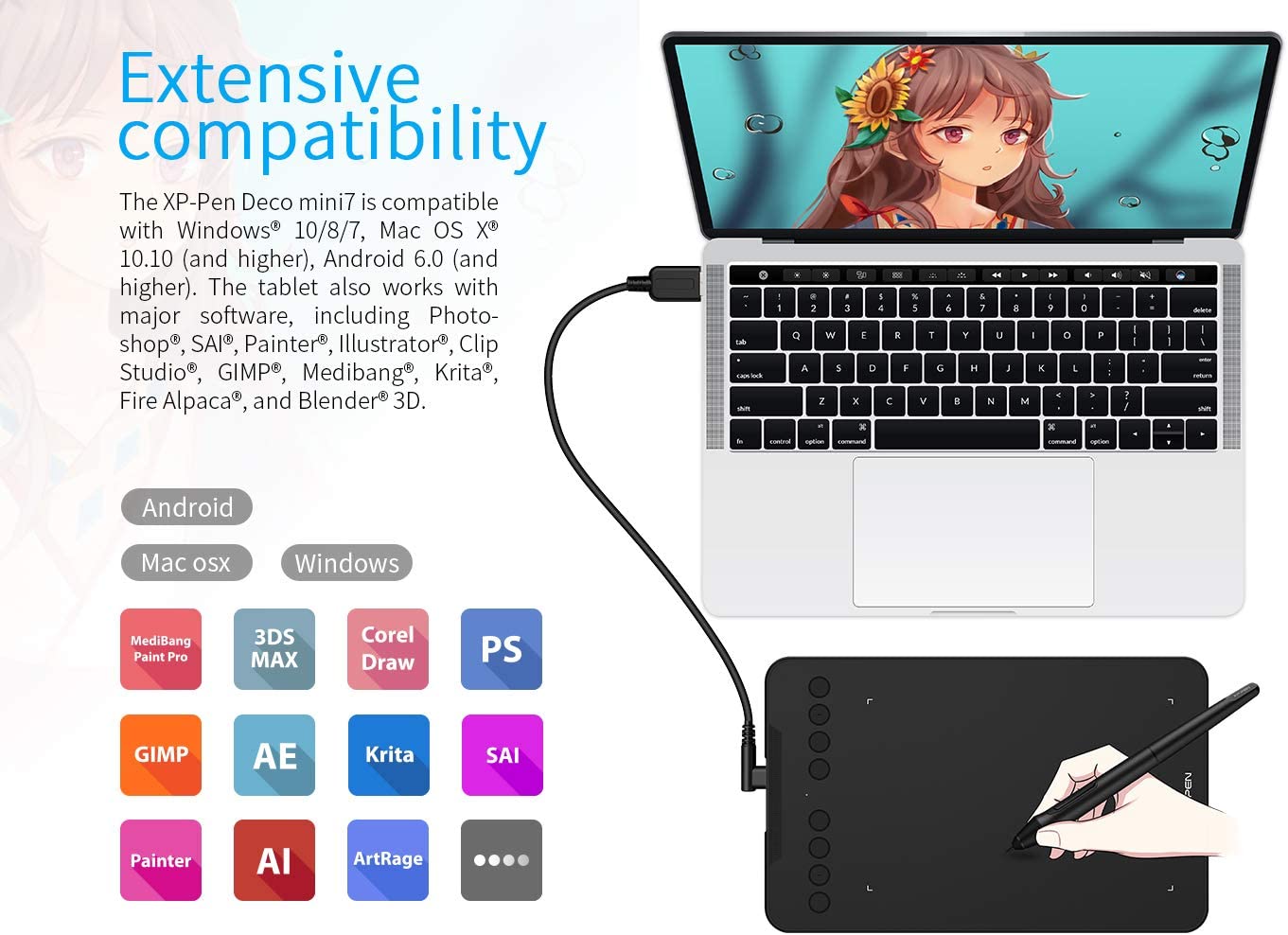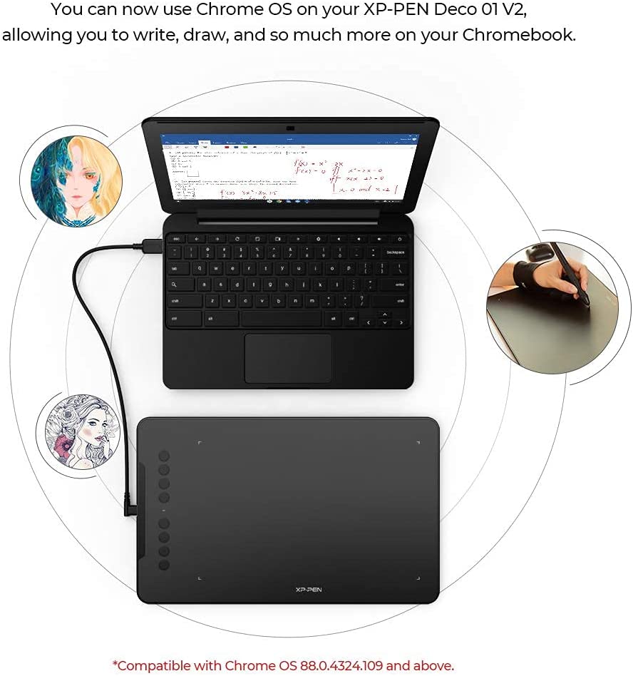 • Digital Drawing Tablet-❤Android Supported❤The Deco 01 V2 can be used with Windows 10/8/7, MAC OS X 10.10 and above and Android 6.0 and above and Chrome OS 88.0.4324.109 or above.