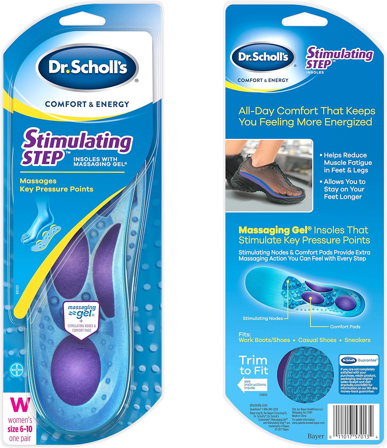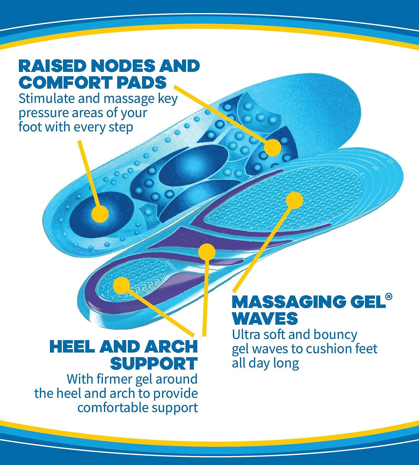 • Massaging Gel Technology plus stimulating nodes & comfort pods for extra massaging action on the bottom of your feet