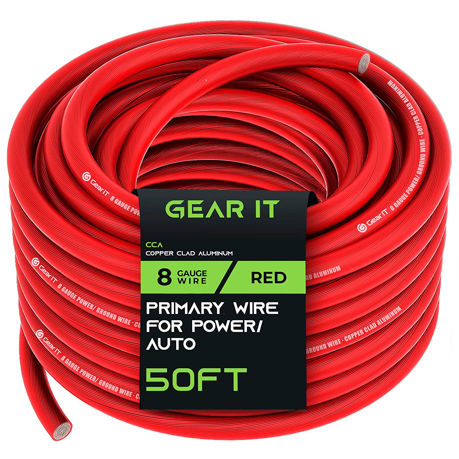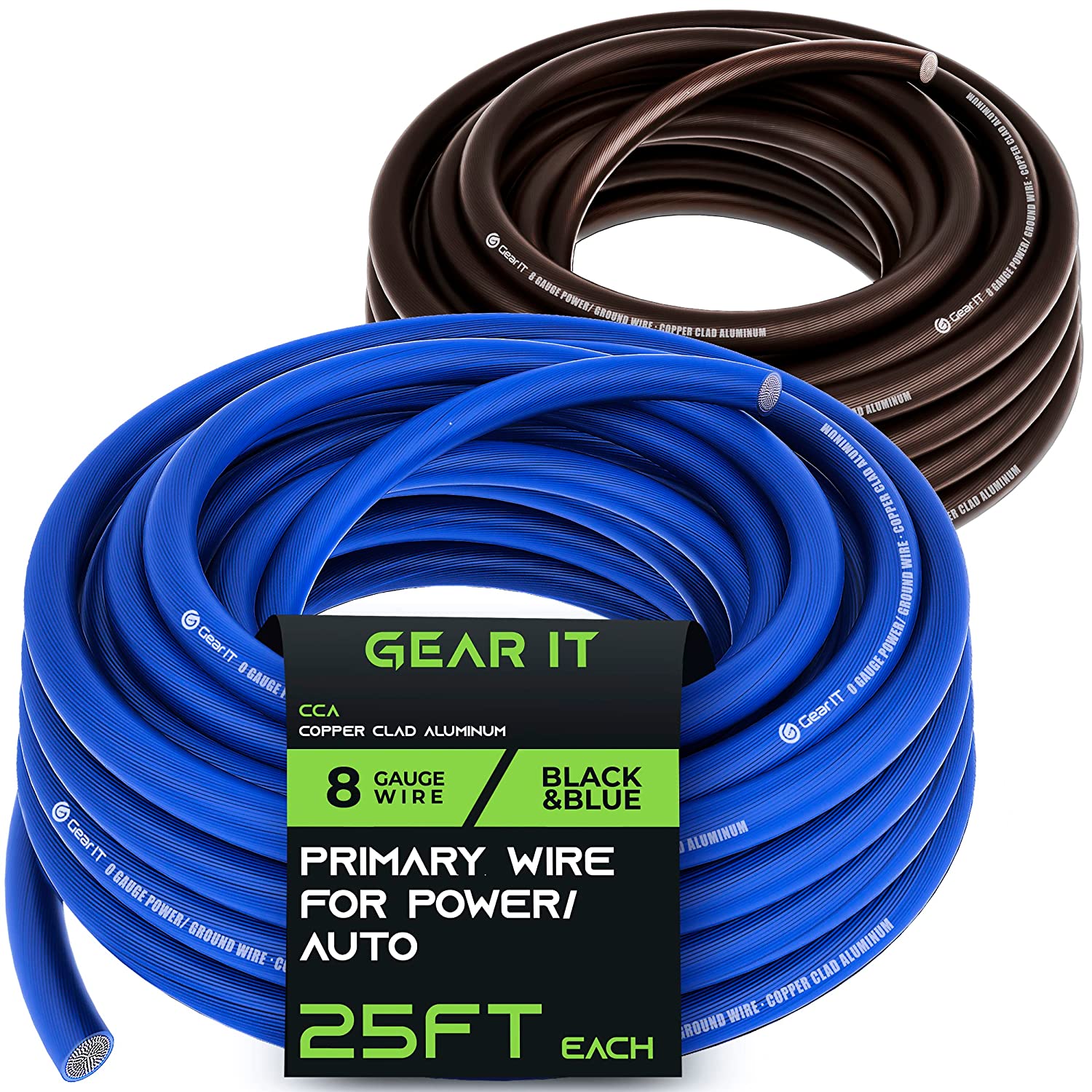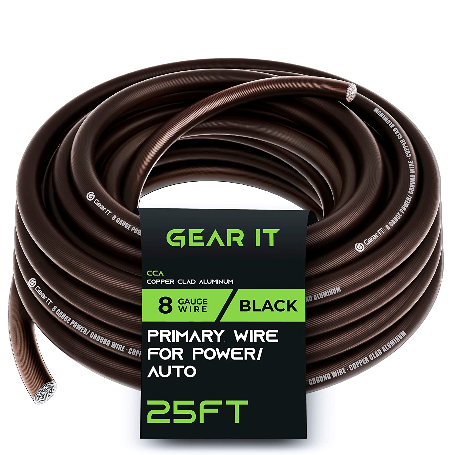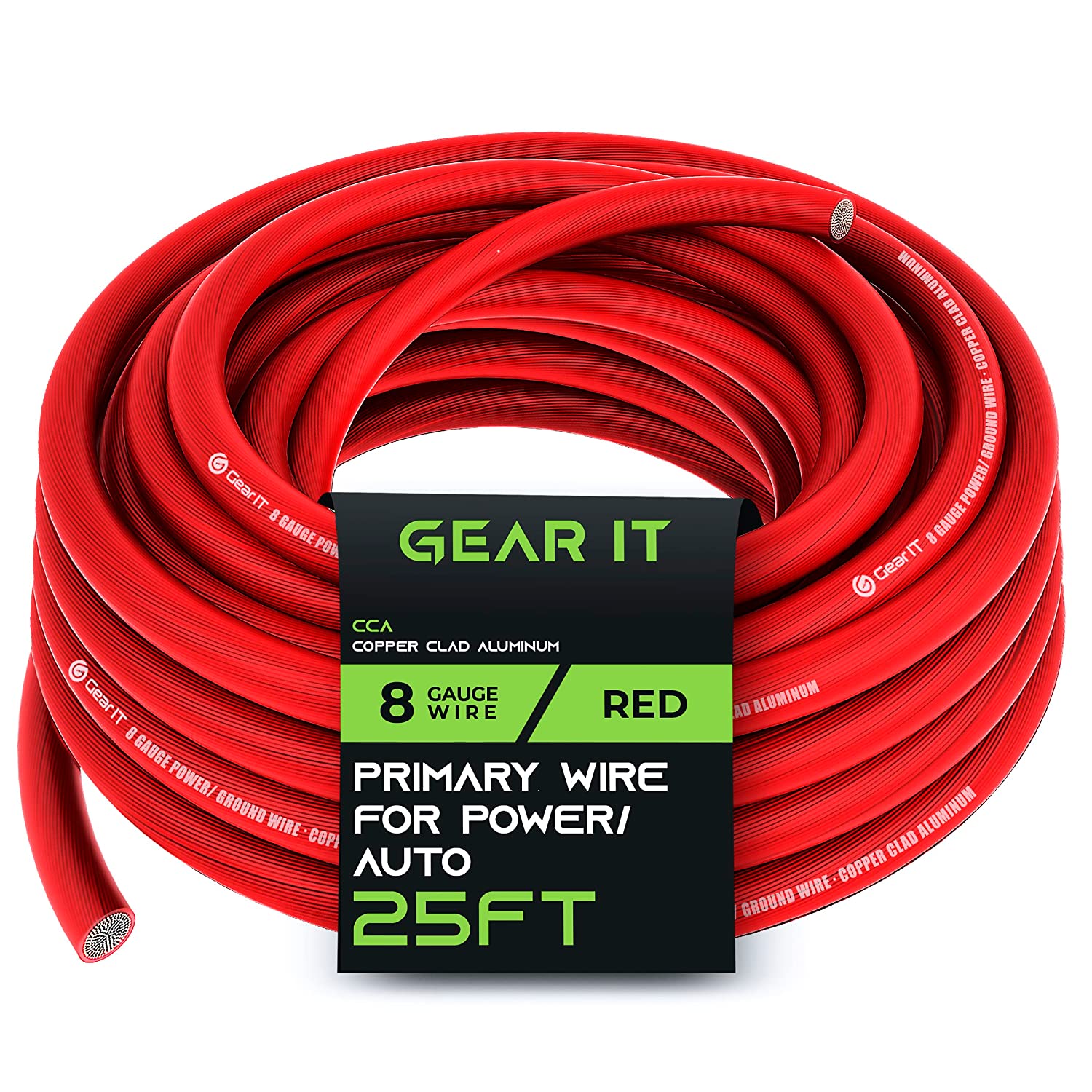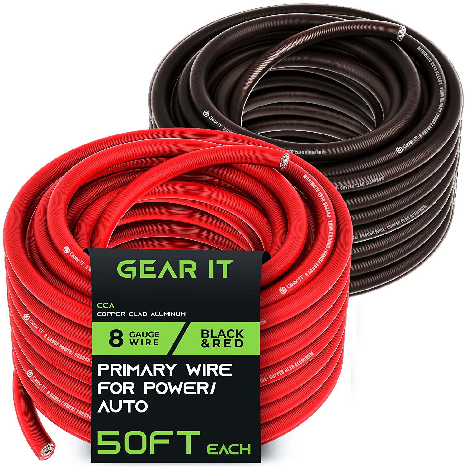 GearIT 8 Gauge Wire (25ft Each- Black/Red Translucent) Copper Clad Aluminum CCA - Primary Automotive Wire Power/Ground, Battery Cable, Car Audio Speaker, RV Trailer, Amp, Electrical 8ga AWG 25 Feet
