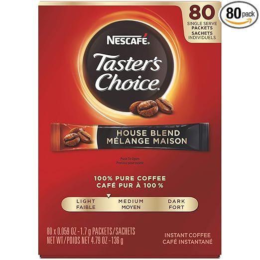 Nescafe Instant Coffee Packets, Taster's Choice Light Roast, 1.7 g Singles (Pack of 80)