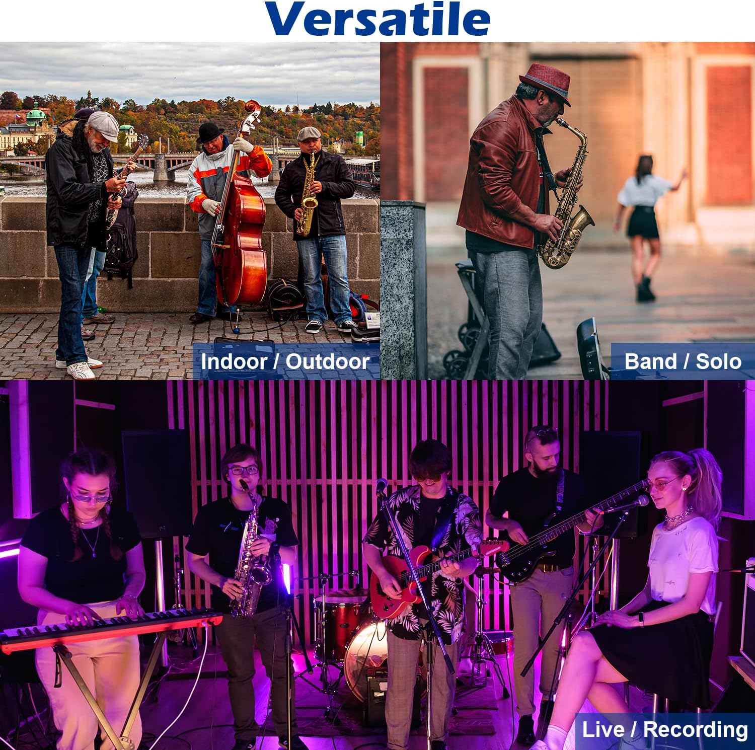 • MULTIPLE TYPES OF BRASS: This wireless instrument microphone set is suitable for various types of horns, such as soprano, alto, tenor, and baritone saxophone, as well as trumpet, french horn, Tuba, and Trombone. The versatile saxophone microphone is, at the same time, a fabulous trumpet microphone.
