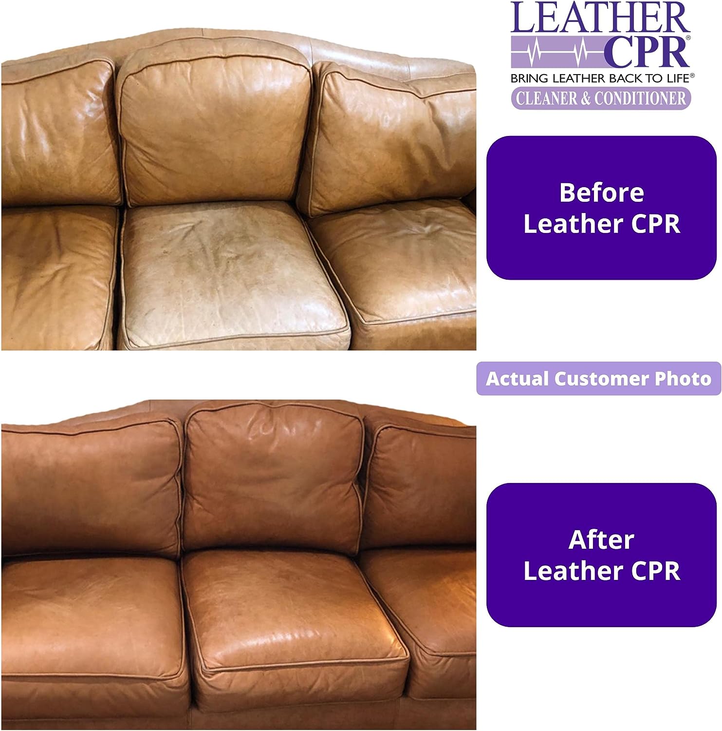 • Improve Appearance & Longevity Beyond Expectations: Users are amazed by their fast Leather CPR results—especially after being so underwhelmed by other leather cleaners & conditioners on the market. From the first application, they delight in how quickly scratches & scuffs blend away to reveal a supple gorgeously restored surface. Our deeply moisturizing cream dries in minutes without sticky or greasy residue. The effects are lasting, prolonging the life of your leather for years.