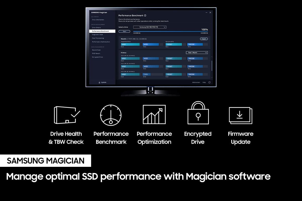 Unleash the power of the Samsung 980 PRO PCIe 4.0 NVMe SSD for next-level computing. 980 PRO delivers 2x the data transfer rate of PCIe 3.0, while maintaining compatibility with PCI® 3.0.The NVM Express design mark is a registered trademark of NVM Express, Inc. Results are based on a comparison with Samsung PCIe NVMe SSDs and SATA SSDs. Performance may vary depending on the SSD’s firmware version and the system hardware & system configuration. Performance measurements are based on IOmeter 1.1.0. The write performances were measured with Intelligent TurboWrite technology being activated. The sequential write performances after Intelligent TurboWrite region are up to 500MB/s(250GB), 1,000MB/s (500GB) and 2,000MB/s (1TB).To maximize the performance of the 980 PRO, please check whether your system supports PCIe 4.0 at the Intel or AMD website. Results are based on a comparison with Samsung PCIe 3.0 NVMe SSDs and SATA SSDs. Test system configuration: AMD Ryzen 9 3900X 12-Core Processor CPU @ 3.79GHz, DDR4 2666MHz 16GBx2, OS-Windows 10 Pro 64bit, Chipset-ASUS-X570-ROG CROSSHAIR VIII FORMULA.