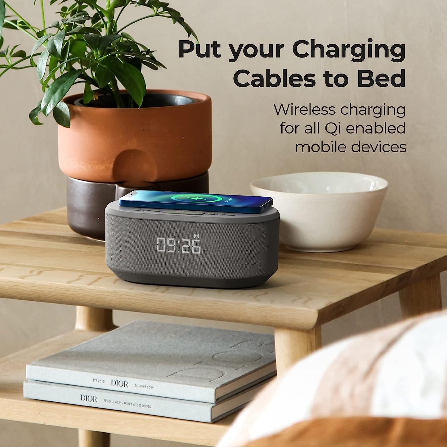 • ✔️ STYLE AND FUNCTION: The Dawn Bedside Alarm Clock combines premium materials with its soft touch top face and fabric wrap surround to look amazing in any setting whether in the bedroom or on a kitchen counter. This all in one solution is the perfect bedside hub for all of you needs
