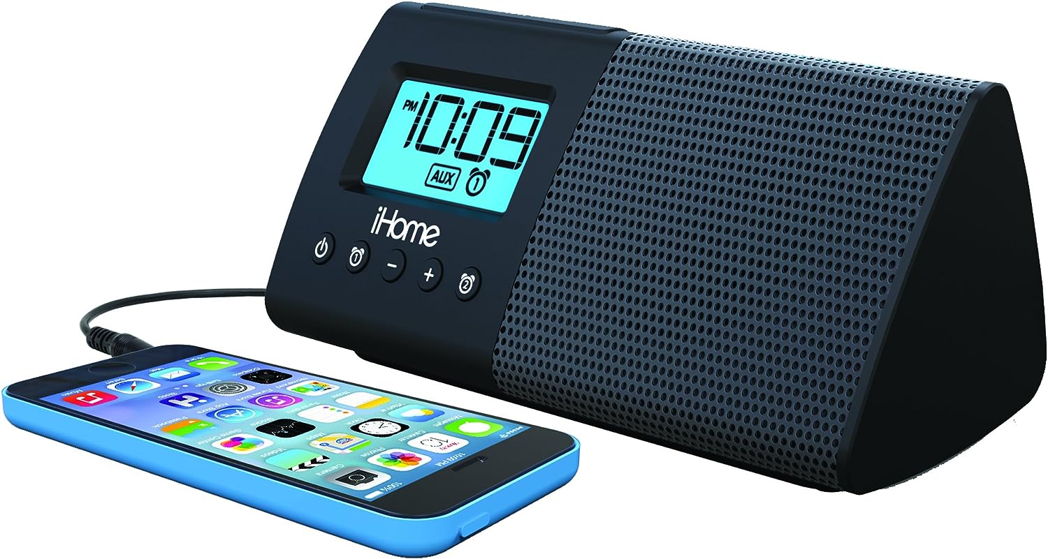 The iHM46 is a dual alarm clock that lets you charge and play your smartphone. Compact size with great sound that’s perfect for your music, games or videos. Dual alarms let you set separate wake times and wake sources (2 built in alarm tones). Charge your smartphone via USB quick charge port while powered by AC adaptor. Also operates on 4 AA batteries (not included) for music anywhere. A retractable built in audio cable lets you connect almost any audio source.