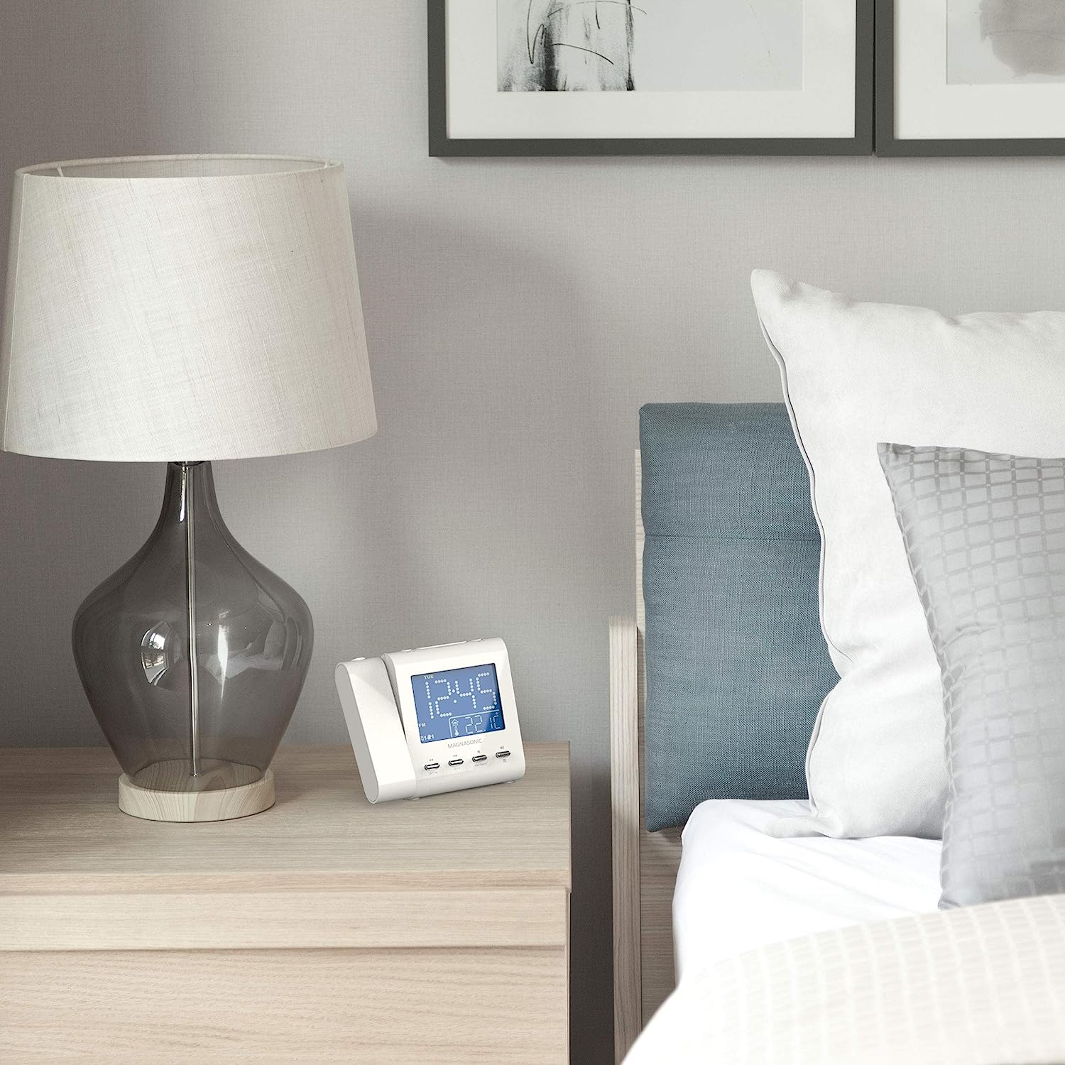 • Project time or even temperature onto your walls or ceiling so that the time will always be in full view. 180-degree swivel projection means you'll never have to roll over to view the time again.