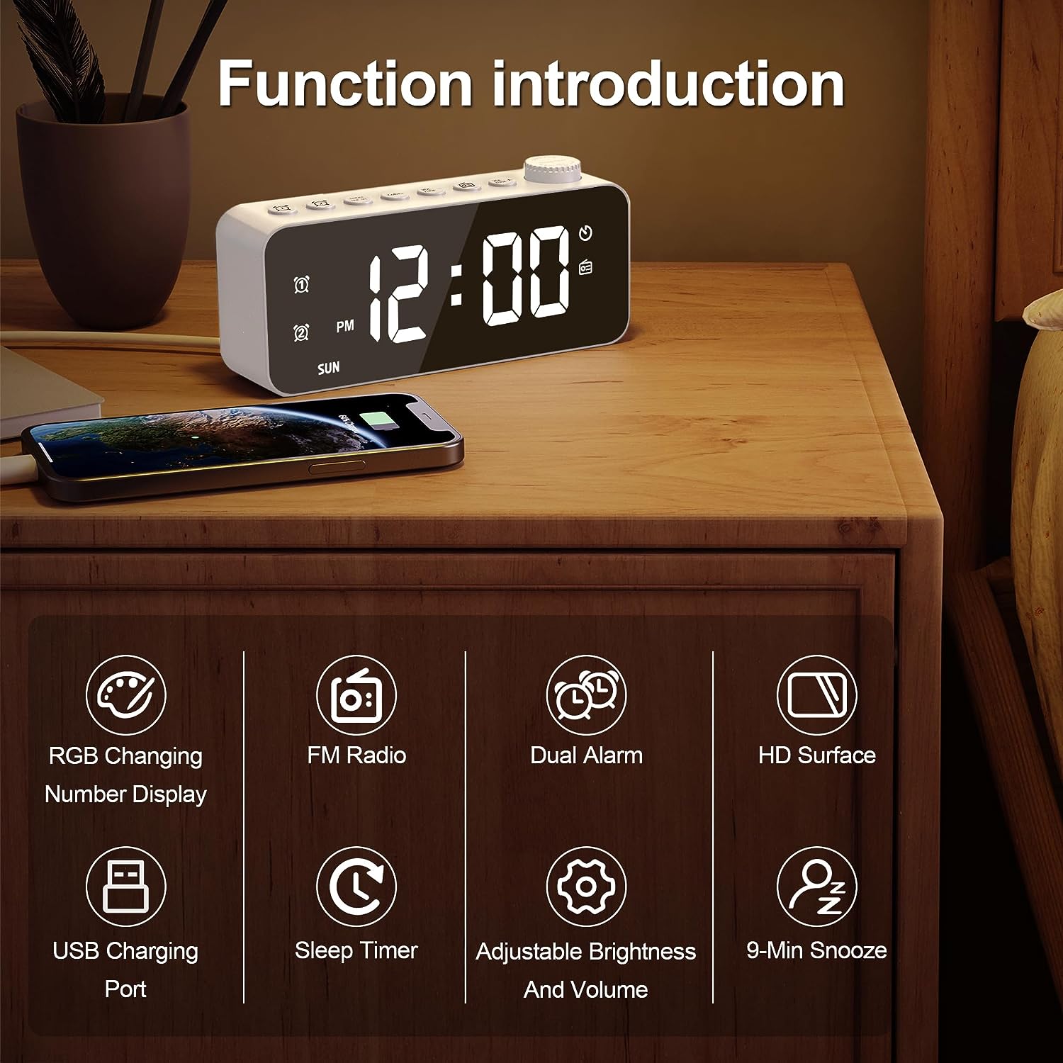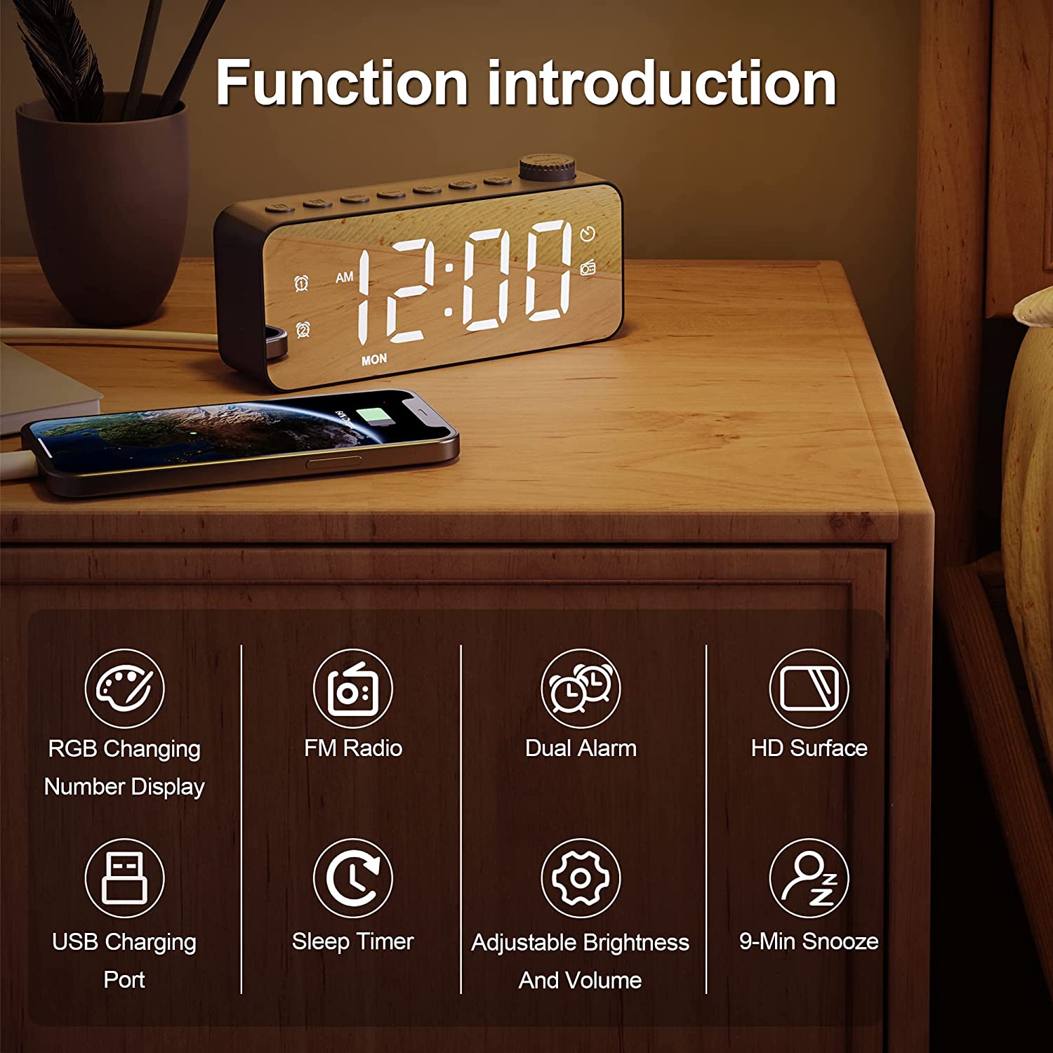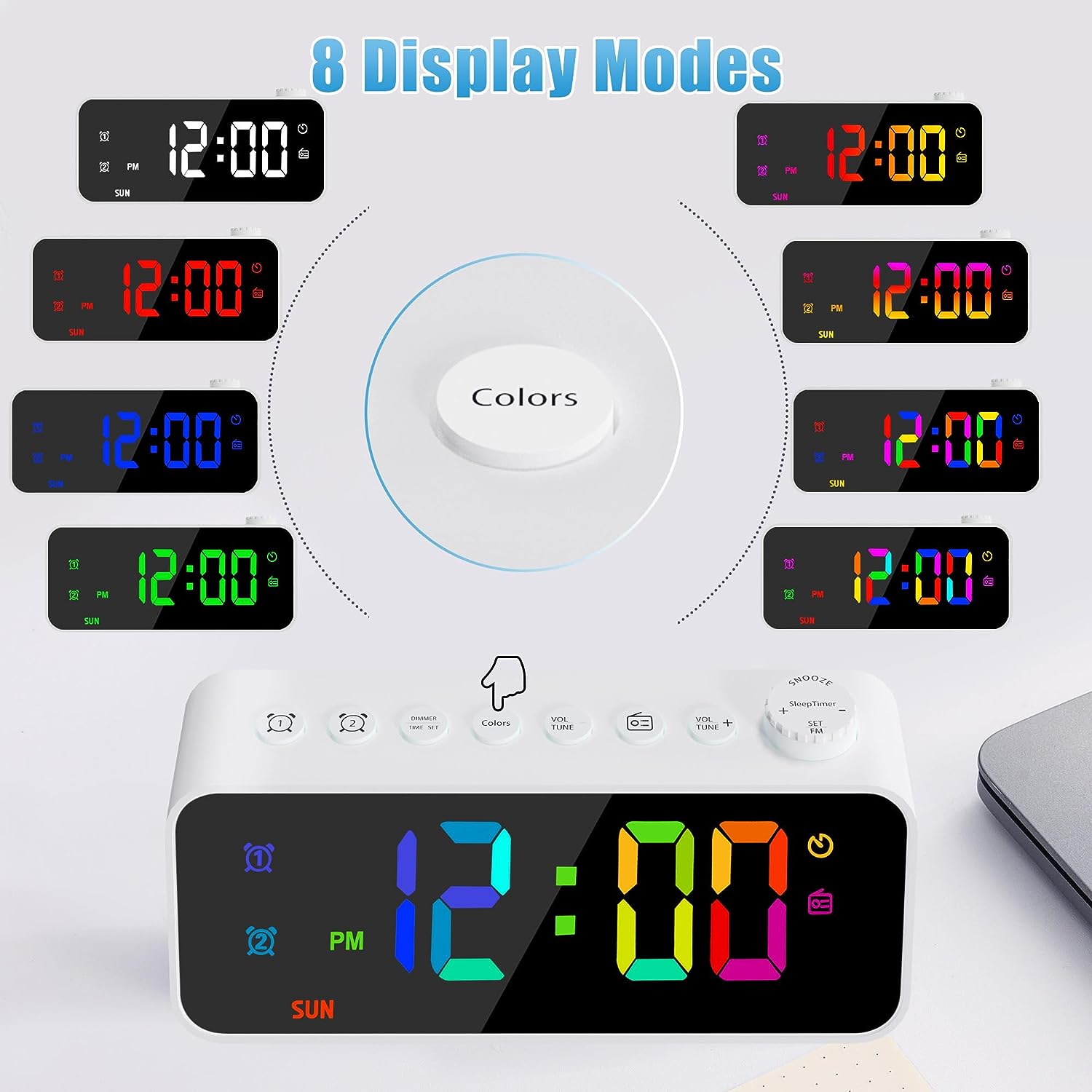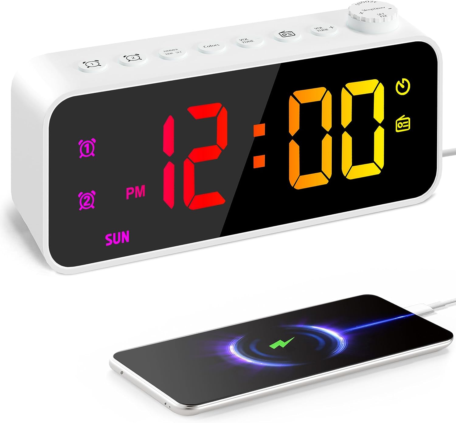 RGB Digital Alarm Clock Radio With Large Surface, Adjustable Brightness and Volume, Dual Alarm with Weekday/Weekend Mode, Snooze, FM Radio Sleep Timer, USB Charging Port, for Bedroom, Bedside(Black)